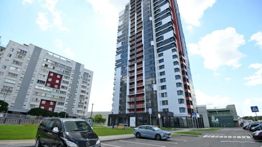 Набор придомового благоустройства для Гомельского ДСК стандартный. Это детская площадка и место для отдыха взрослых, скамейка и урна у входа в подъезд, контейнерная площадка для раздельного сбора мусора. Каждая квартира будет обеспечена местом для автомобиля. Перед уходом с объекта ДСК высадит деревья, кустарники, устроит европейский газон.