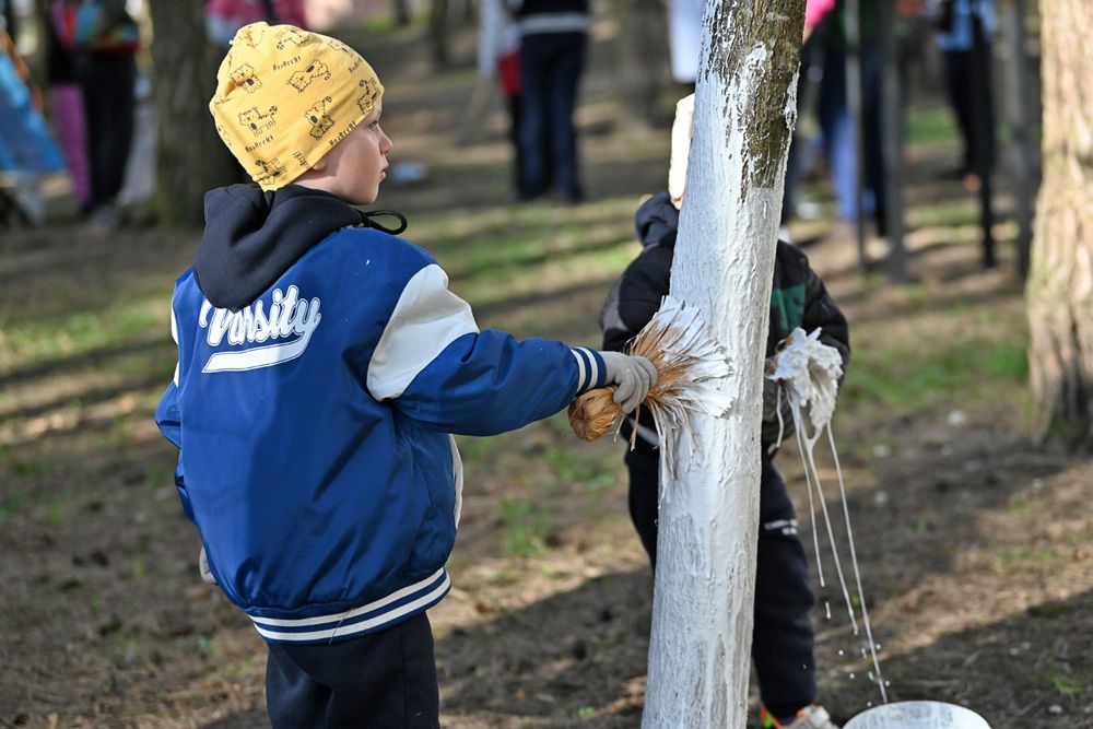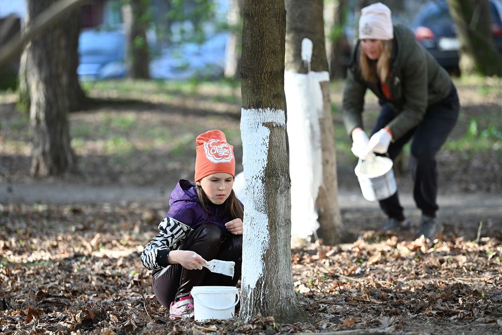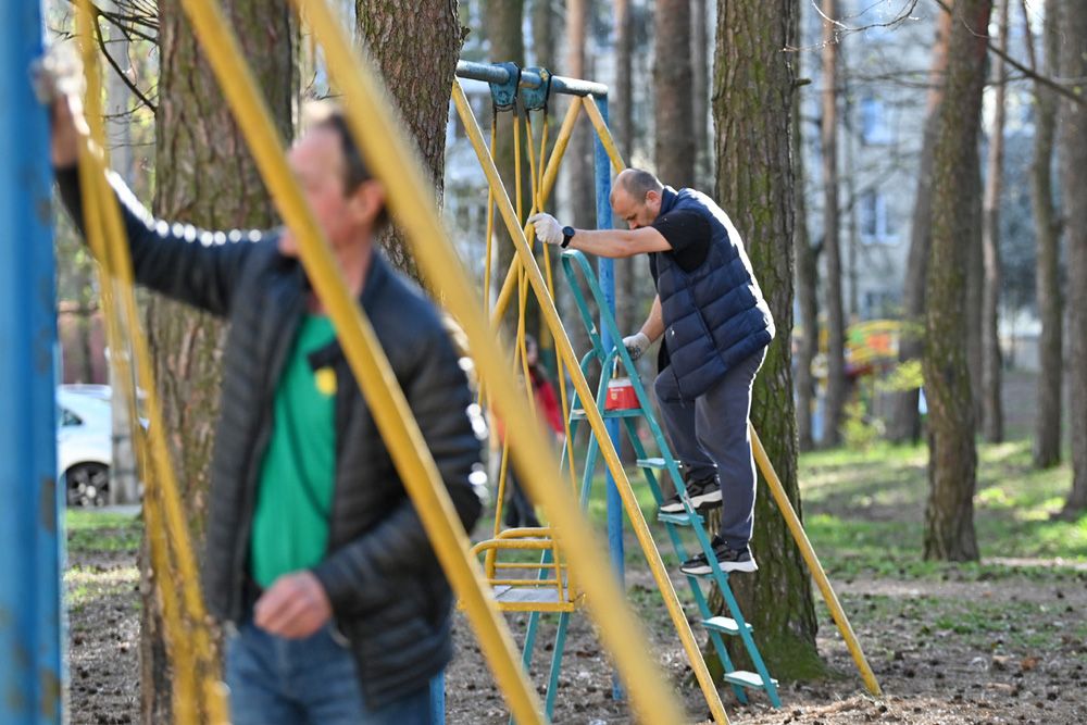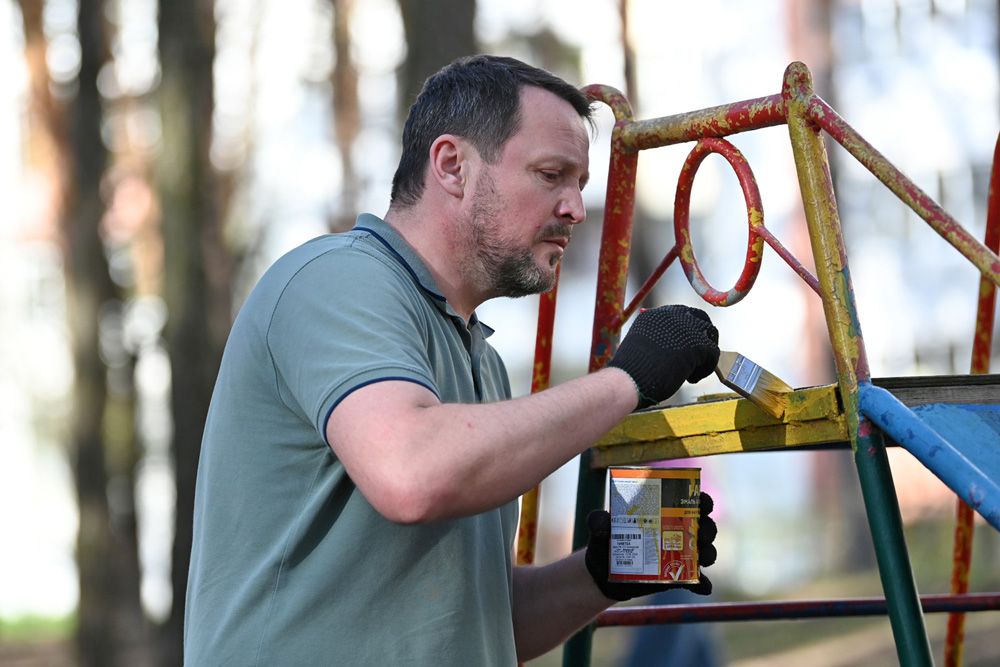 Объёмы работ эмжэковцы определили заранее в домовом чате. В перечне задач – убрать бытовой мусор, побелить деревья, покрасить игровое оборудование, обновить разметку на парковке и установить новые урны. Кстати, их МЖК подарил Гомельский домостроительный комбинат, которым руководит депутат облсовета Александр Гончаров.
