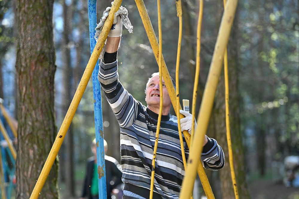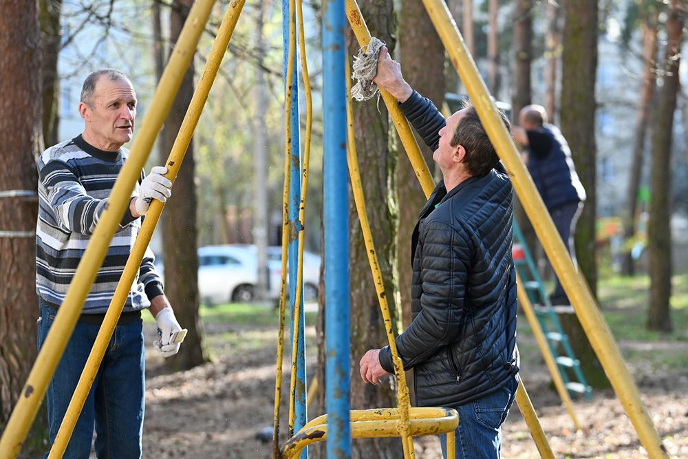 «Витя, пора замешивать бетон», «Саша, перекладину красим в синий цвет», «Раиса Ивановна, зови внуков, мы начинаем». На субботнике в МЖК «Солнечный» так всегда – конкретные вводные и инвентарь под роспись.