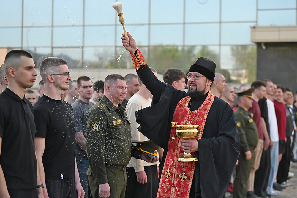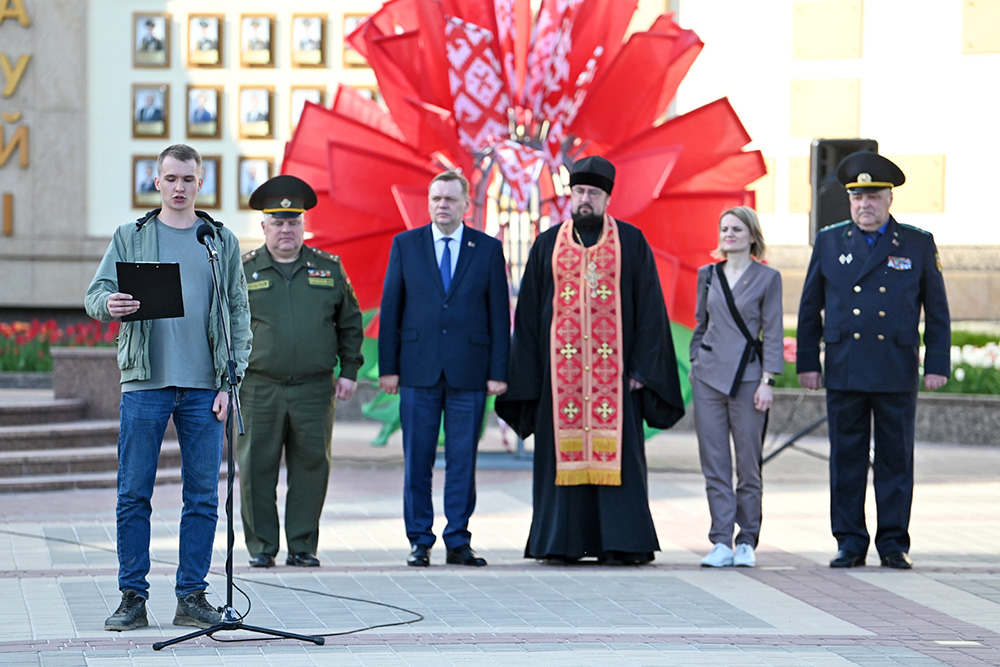 Напутствия будущим солдатам срочной службы также дал заместитель председателя Гомельского облисполкома Дмитрий Алейников. По традиции, призывников благословил священник.