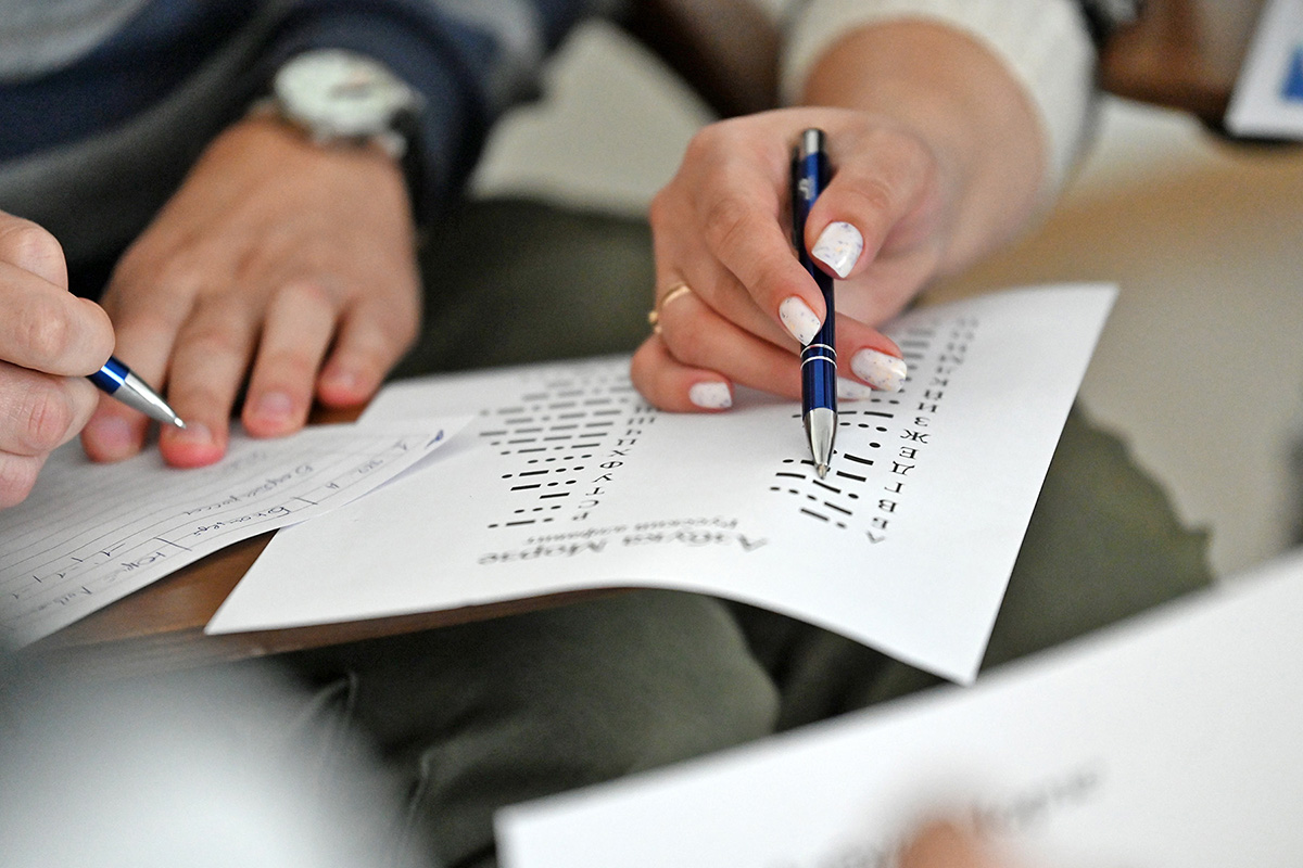 В третьем туре участники примерили на себе роль радистов. Им предстояло расшифровать сообщение из штаба, переданное азбукой Морзе. И хотя ключи были у каждого на руках, это оказалось непростым делом.