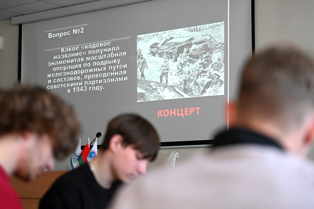 Практически не вызвали трудностей у игроков вопросы о партизанской борьбе и об освободительных операциях на территории Беларуси. На них ответили практически все команды. К примеру, без колебаний назвали операцию «Концерт» по подрыву железнодорожных путей и составов, проведённую партизанами в 1943 году.