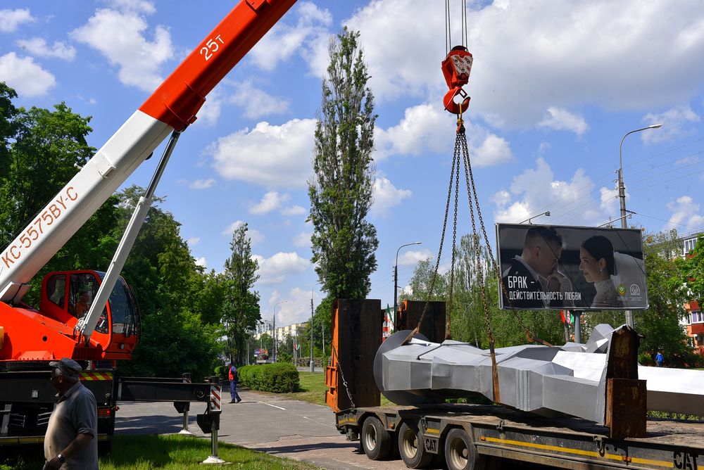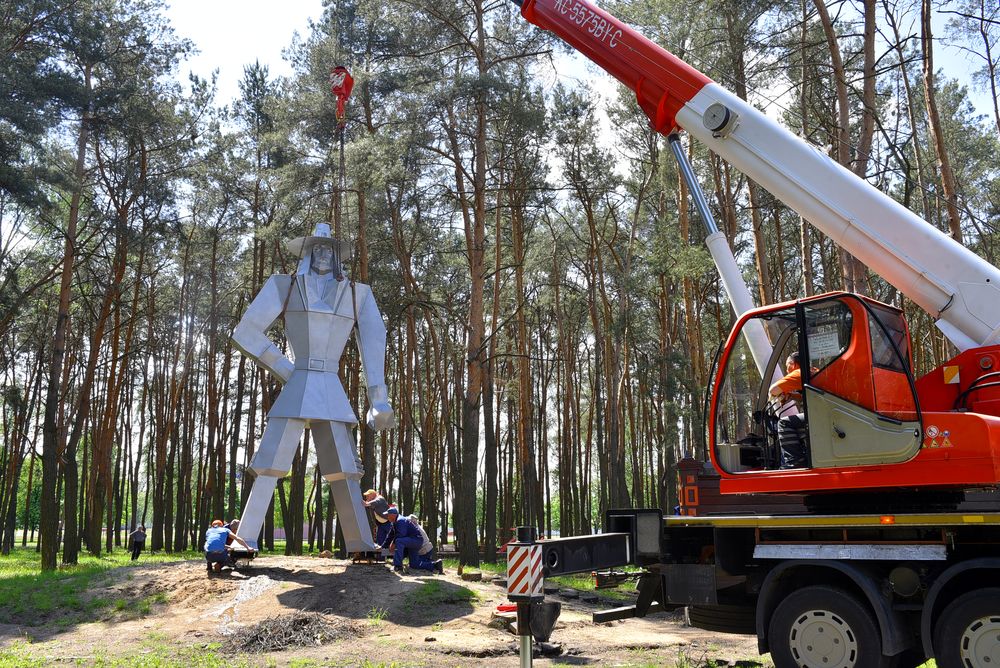 Скульптуру Гулливера вернули в Советский район Гомеля после реставрации. Сейчас её устанавливают в парке Фестивальном у входа со стороны Речицкого проспекта.