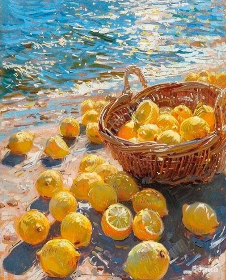 Корзину ярко-жёлтых лимонов на берегу моря за три часа предлагают нарисовать в студии «Мольберт». Если понравился сюжет, записывайтесь на мастер-класс.