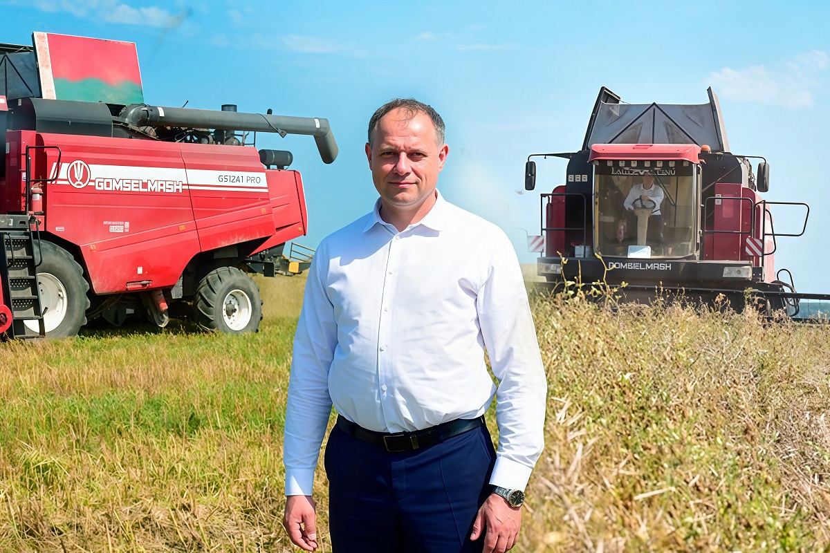 Ближе к обеду прямо в поле одного из хозяйств Гомельского района притормозил служебный внедорожник, из него выскочил подтянутый мужчина – и прямиком к комбайну. Через пару минут «то ли Леонидыч, то ли депутат» завел КЗС-1218, и махина «поплыла» по колхозному полю.