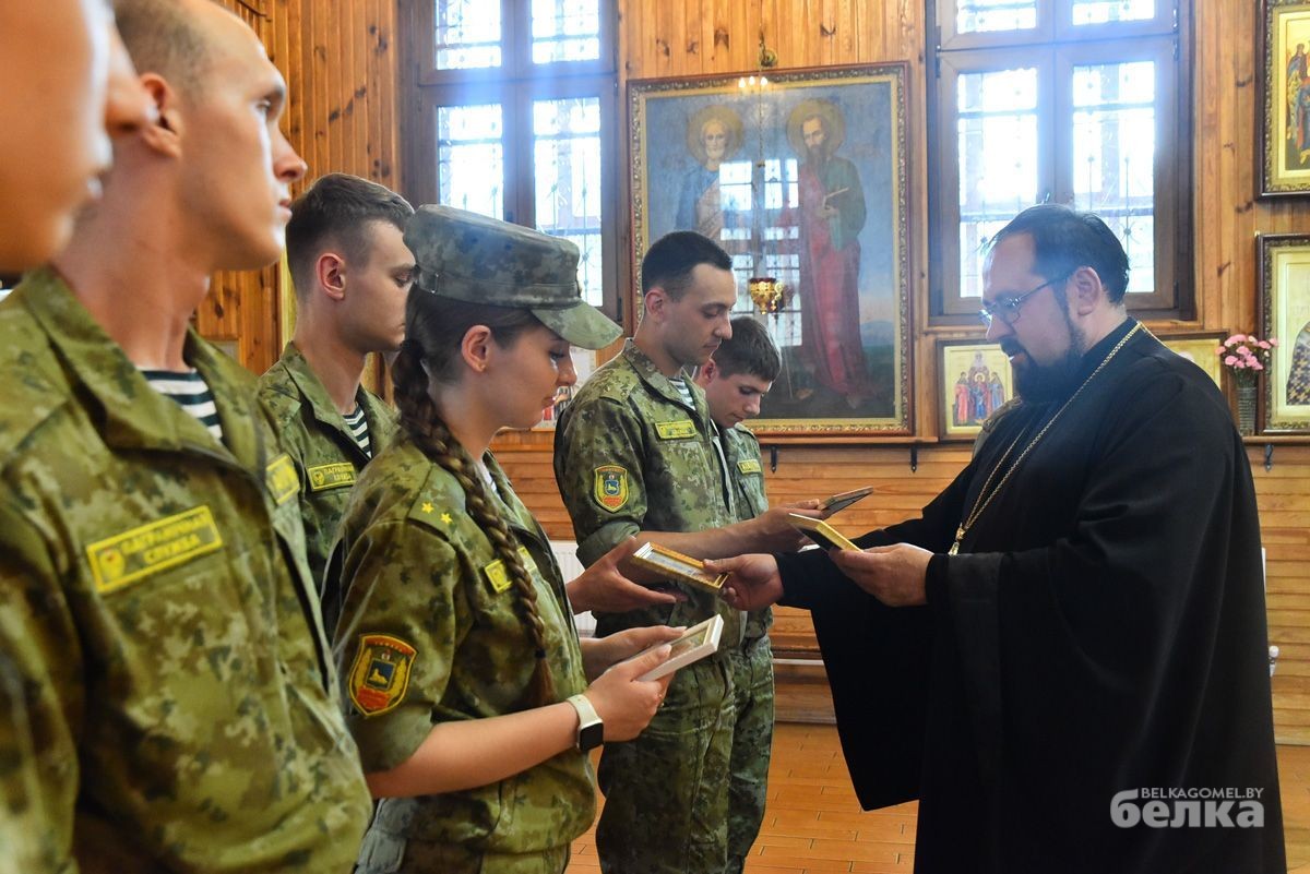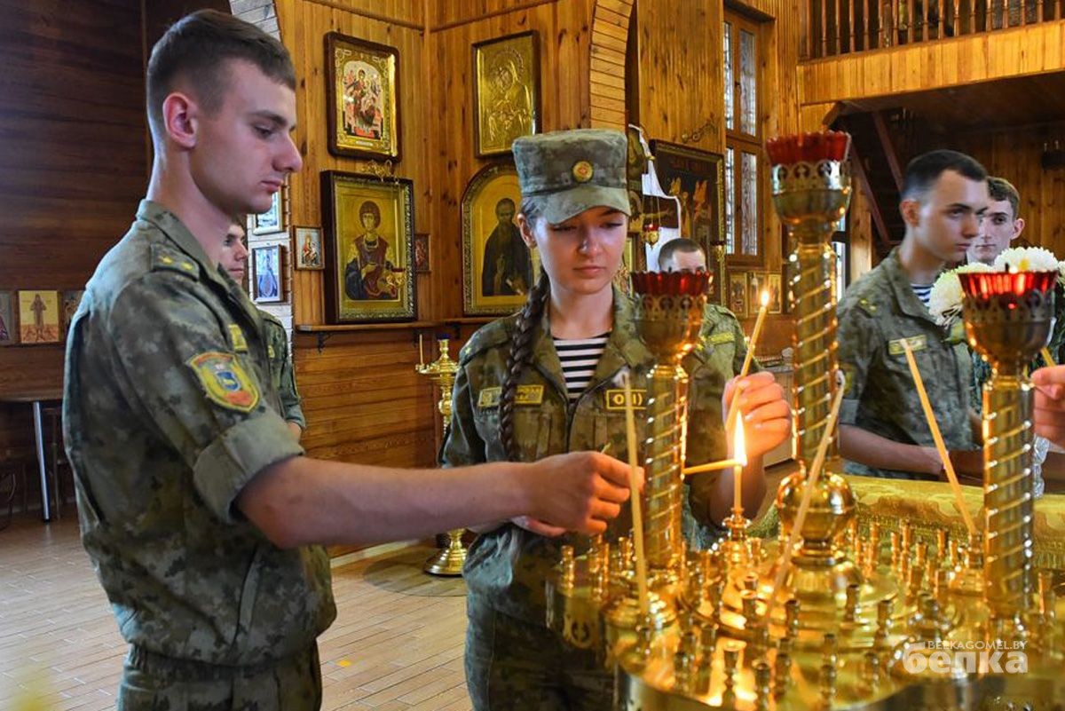 В первый месяц службы Антона, Леcю, Артёма и других новобранцев собрали в управлении Гомельской пограничной группы и отвезли в священное для пограничников место – храм архангела Михаила, небесного покровителя пограничной службы. На территории церкви установлен поклонный крест в память о пограничниках, погибших при выполнении воинского долга.