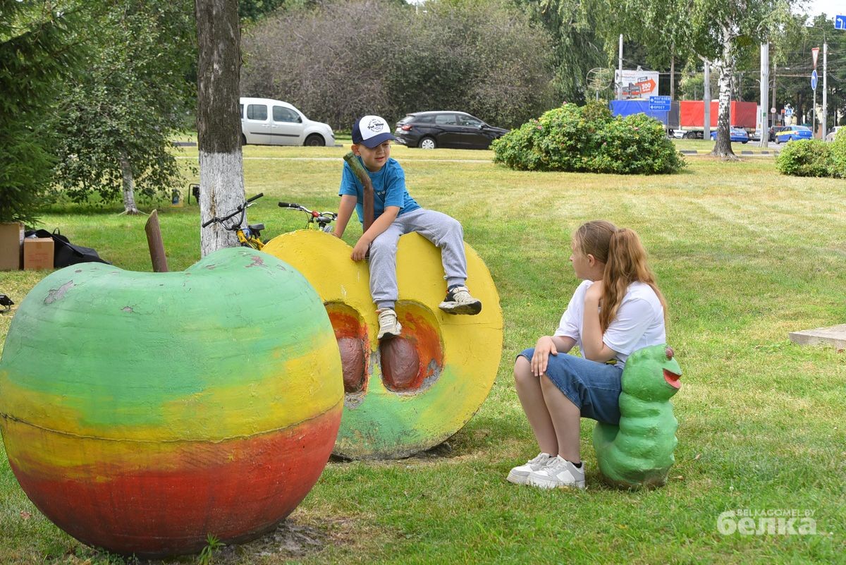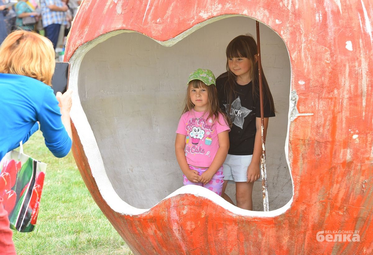 Это место хорошо знакомо многим гомельчанам: его украшают огромные бетонные яблоки, вес самого большого – полторы тонны. Автор малых архитектурных форм, Тамара Дмитриева, когда-то жила в этой части города. В 60-х годах дома здесь снесли, освободив землю под строительство транспортной развязки. Уцелевший зелёный уголок стал напоминанием о детстве, прежде всего для жителей Куйбышевского проезда, улиц Барыкина и Хмельницкого. Многие из них не изменяют традиции и каждый год приходят в яблоневый сад, чтобы освятить плоды нового урожая.