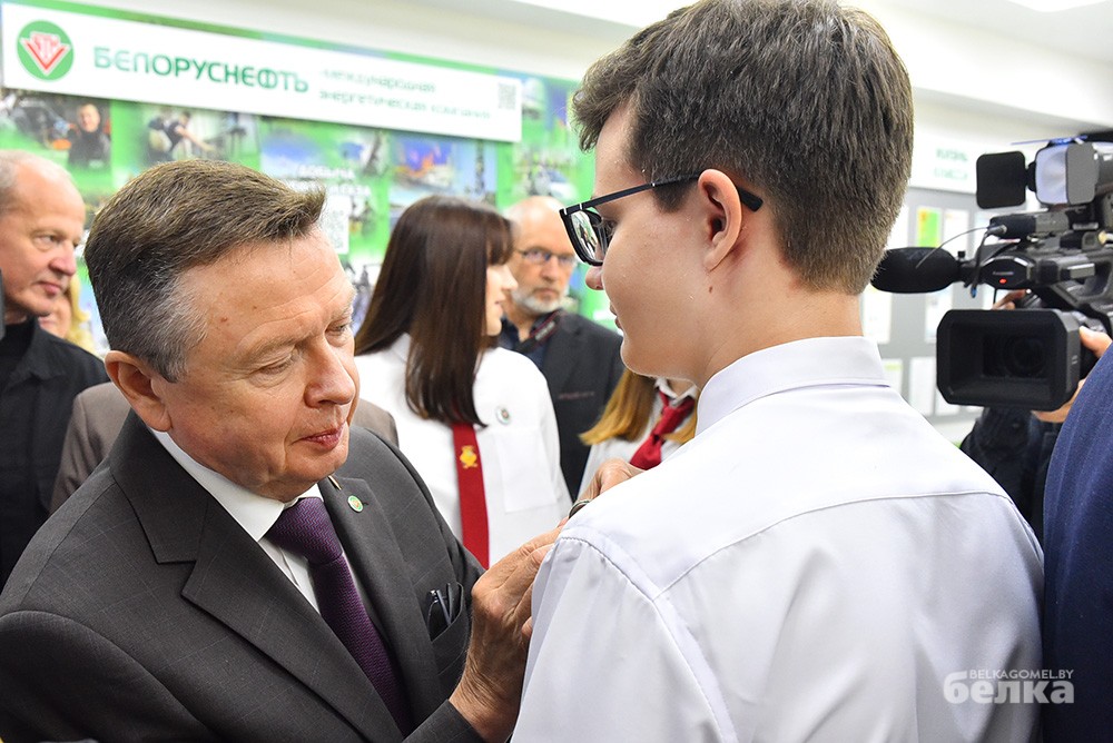 «Наша компания находится на подъёме. Растут объёмы работ, прежде всего, добыча нефти. Всё стремительно меняется и совершенствуется, во многом благодаря процессам цифровизации. Так что когда вы придёте к нам на работу, то увидите уже совершенно новую «Белоруснефть». Помимо чисто нефтяных специальностей, таких как геофизика, геология, технология добычи нефти, во всех сферах деятельности предприятия у нас представлены профессии народного хозяйства. Работа есть, дело за вами», – обрисовал перспективы сотрудничества с гимназией генеральный директор ПО «Белоруснефть» Александр Ляхов.