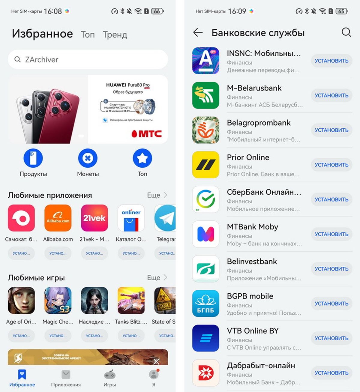 Здесь же есть и популярные мобильные игры, включая PUBG Mobile, Standoff 2 и Words of Wonders (Игра в слова). Мобильные приложения банков Беларуси представлены почти в полном объеме, есть даже те, которых нет в других крупных магазинах приложений: СберБанка, Белагропромбанка, Белинвестбанка.