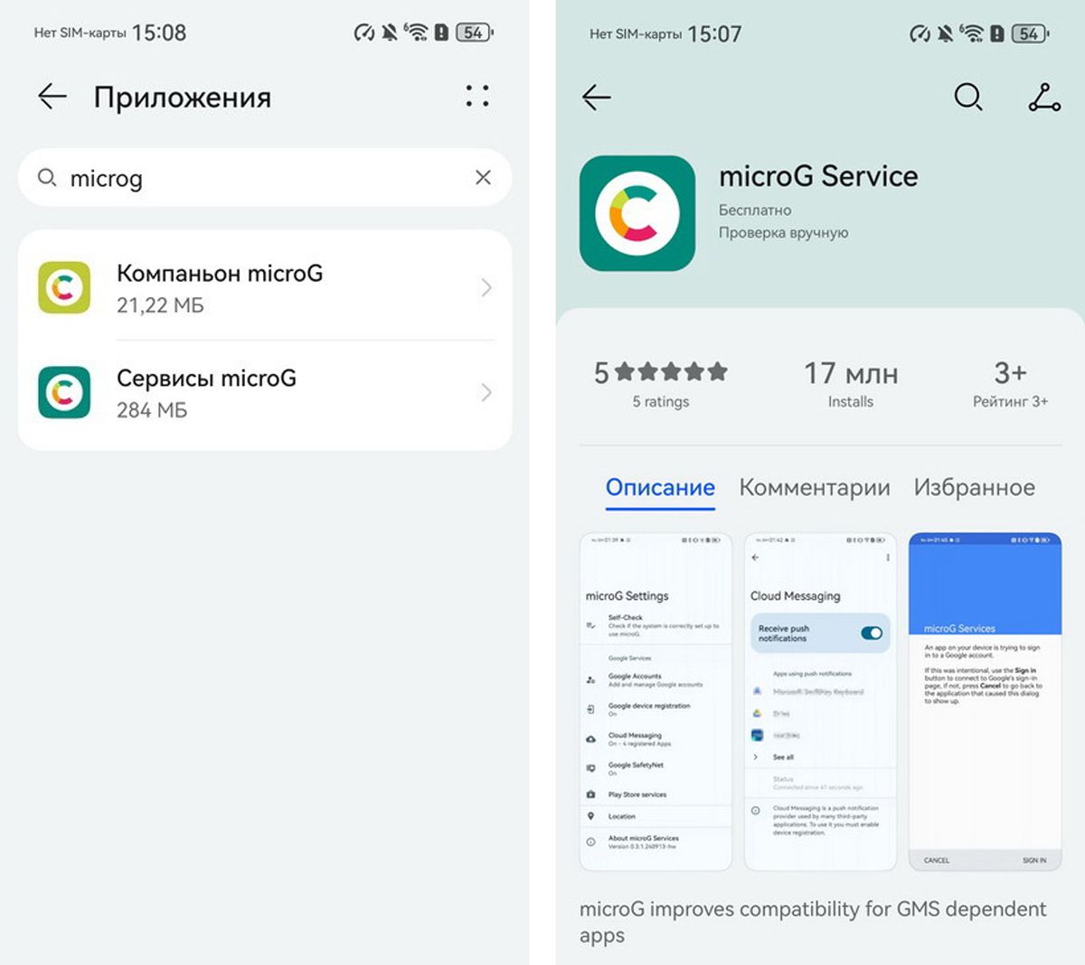 Шаг 1. Сначала установите microG («микроДжи») из Huawei AppGallery. Приложение состоит из двух компонентов – когда начнете устанавливать одно, автоматически подтянется и второе. Тогда приложения из GBox («ДжиБокс») и Google Play будут устанавливаться в память устройства и запускаться быстро.