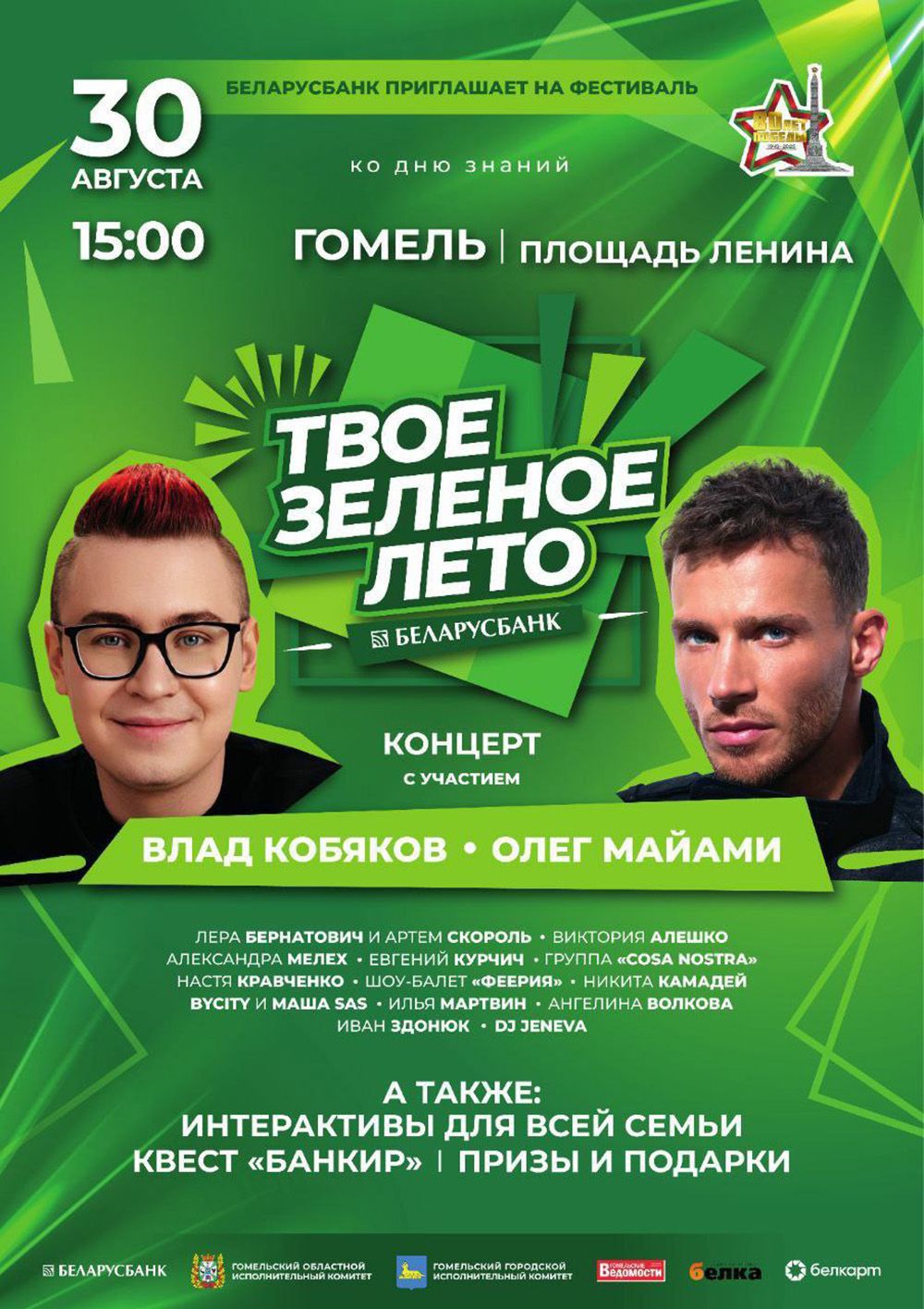 Сегодня, 30 августа, в Гомеле ожидается настоящий праздник музыки и веселья. Главная городская площадь принимает фестиваль «Твоё зелёное лето». Гостей ждёт незабываемый праздник, наполненный энергией, драйвом и яркими эмоциями.