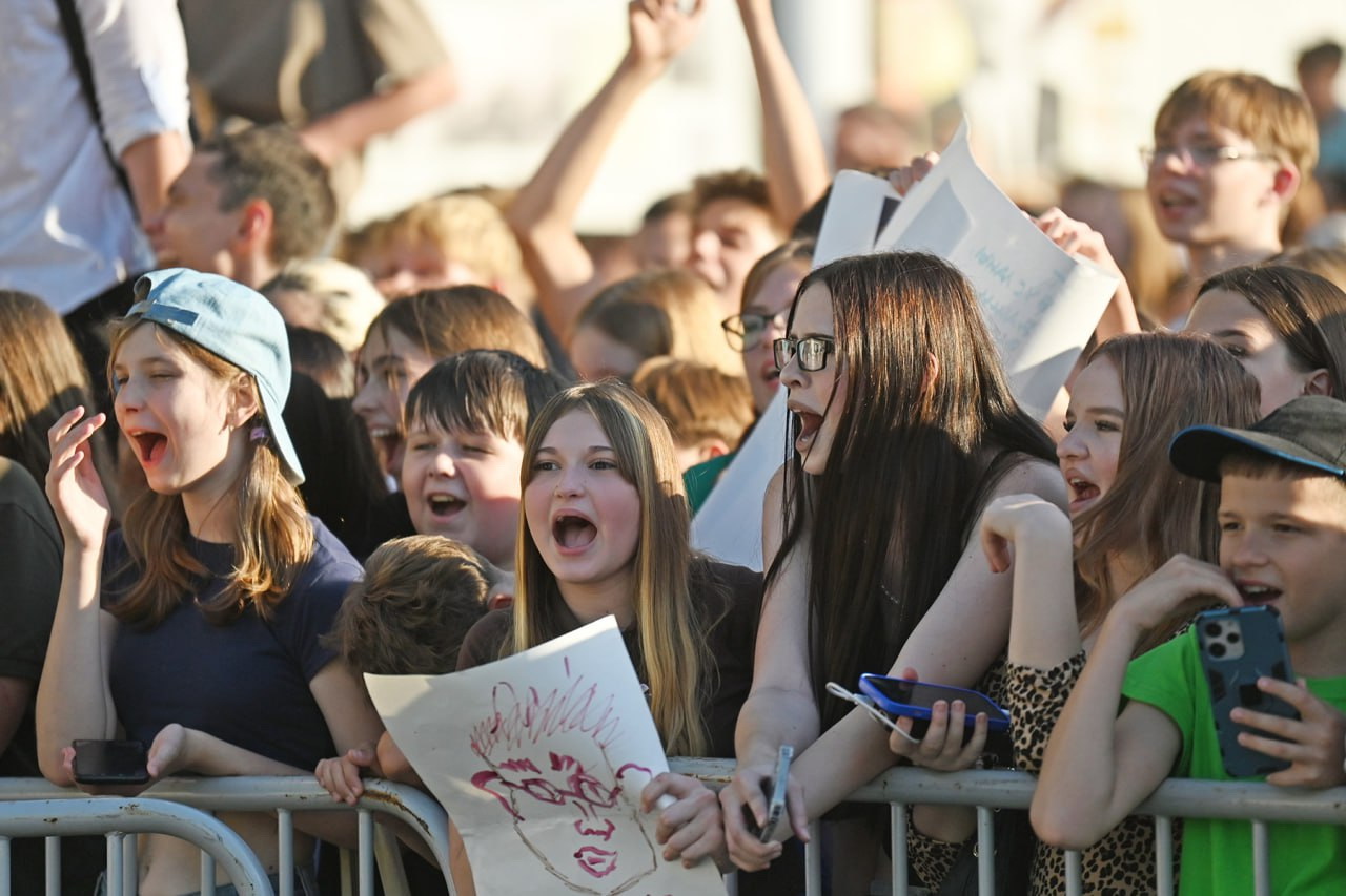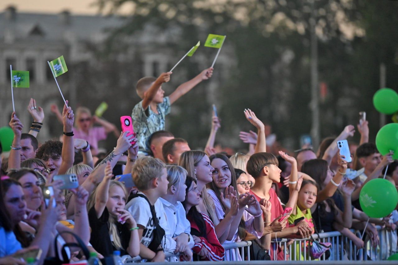 Еще одна фишка фестиваля – встреча с любимыми артистами. Блогер и певец Влад Кобяков предложил сделать Гомель самым громким городом Беларуси – публика отозвалась протяжным «да-а-а!» и громкими аплодисментами.