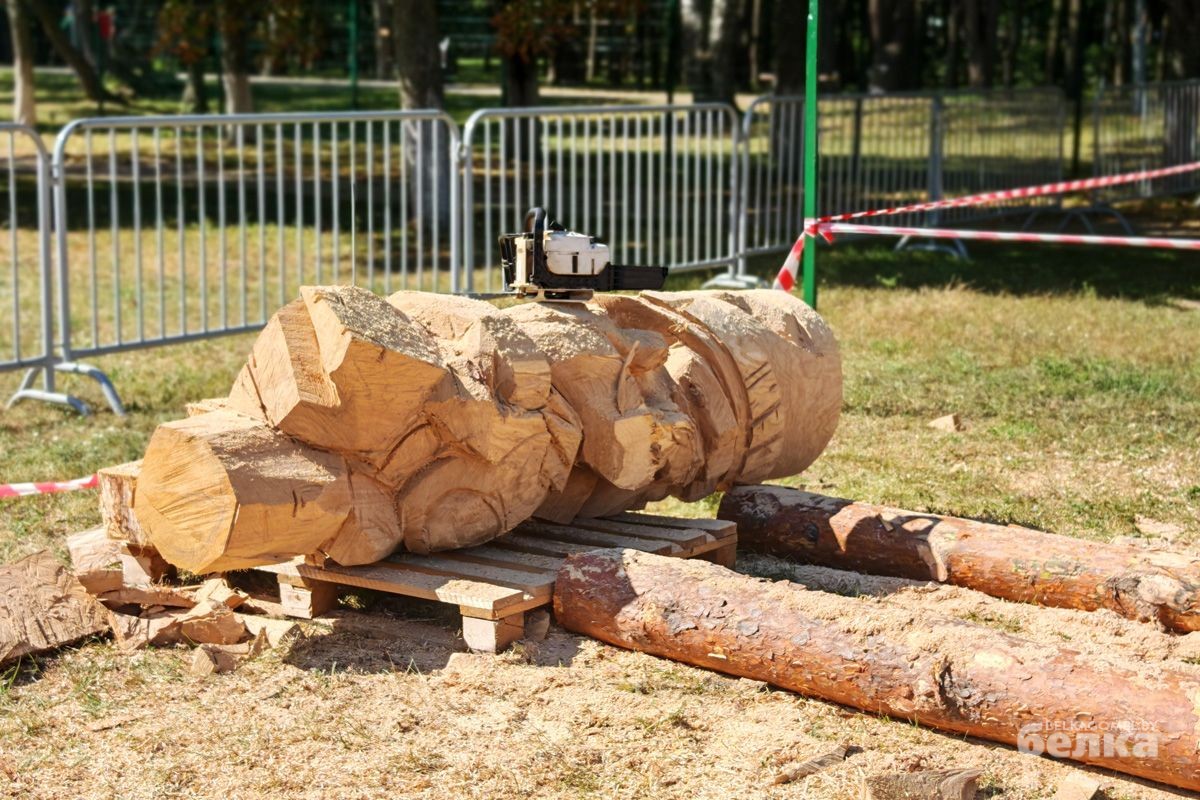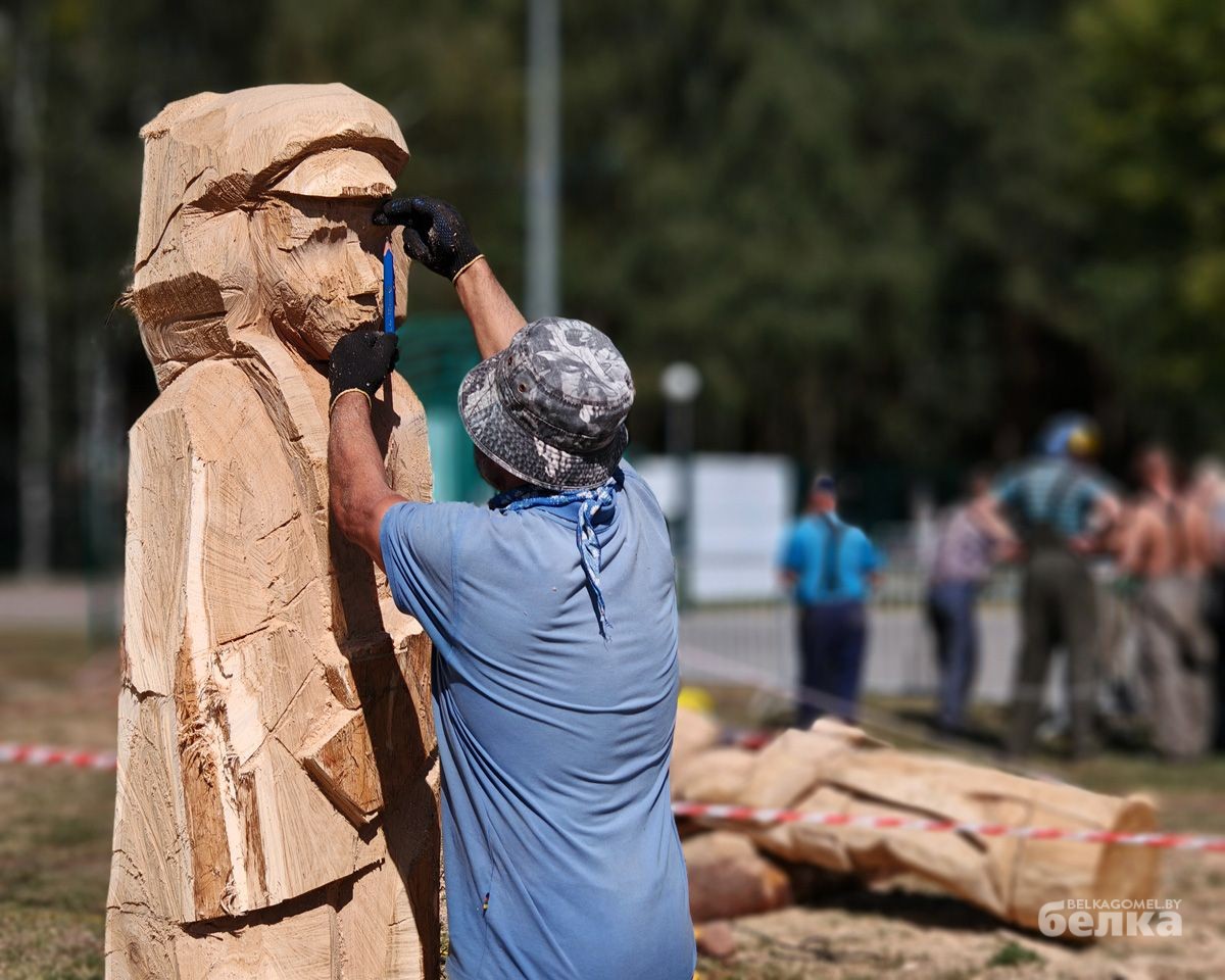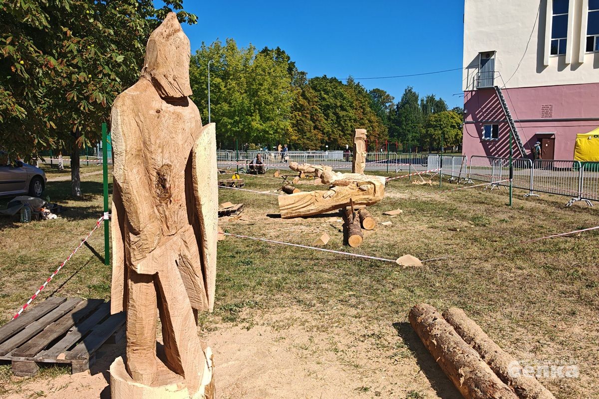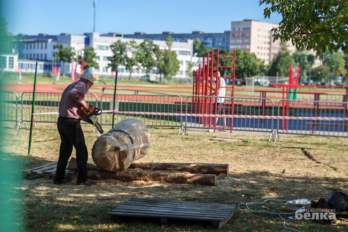 Впервые в Гомеле проходит масштабный фестиваль деревянных скульптур. На стадион «Луч» съехались мастера-резчики со всех уголков Беларуси, чтобы на глазах у зрителей превратить дубовые бревна в настоящие произведения искусства.