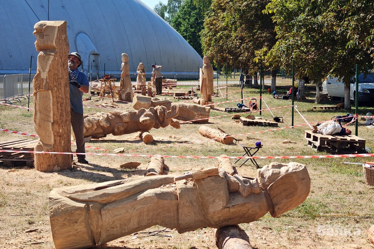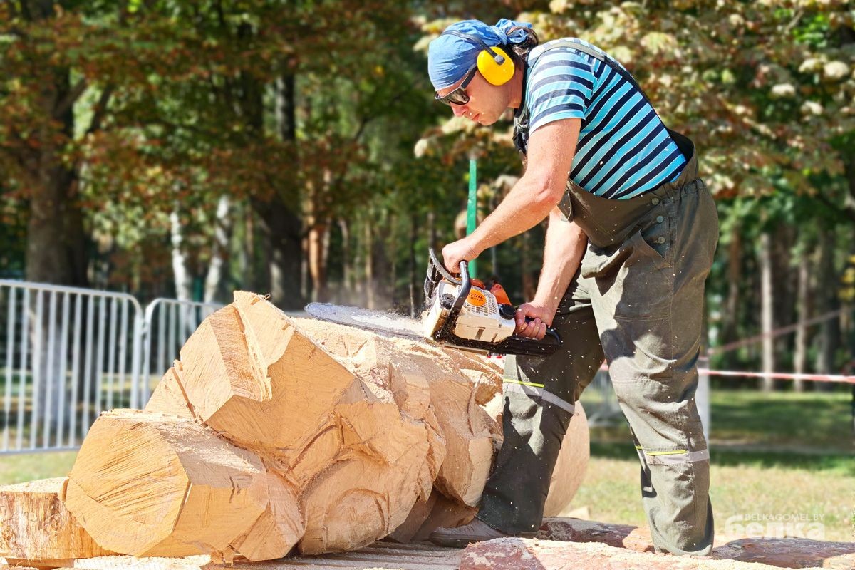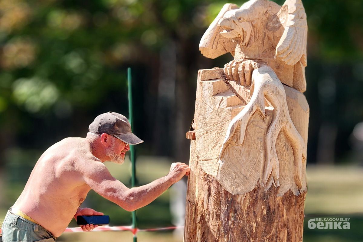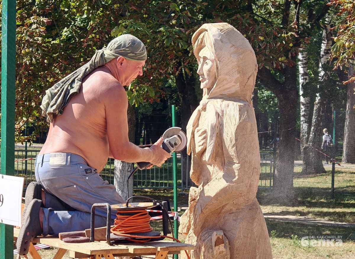 Впервые в Гомеле проходит масштабный фестиваль деревянных скульптур. На стадион «Луч» съехались мастера-резчики со всех уголков Беларуси, чтобы на глазах у зрителей превратить дубовые бревна в настоящие произведения искусства.