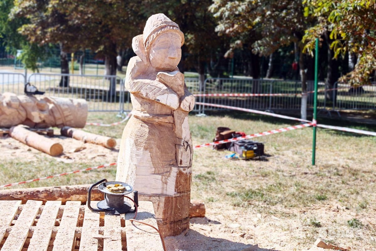 Торжественное открытие фестиваля состоялось 2 сентября. Каждый из 13 участников вытянул жребий и получил большую дубовую заготовку – двухметровое бревно диаметром около 60 сантиметров. Теперь у мастеров есть всего неделя, чтобы превратить эту заготовку в сказочного героя. Тема фестиваля – «В мире сказок и чудес».