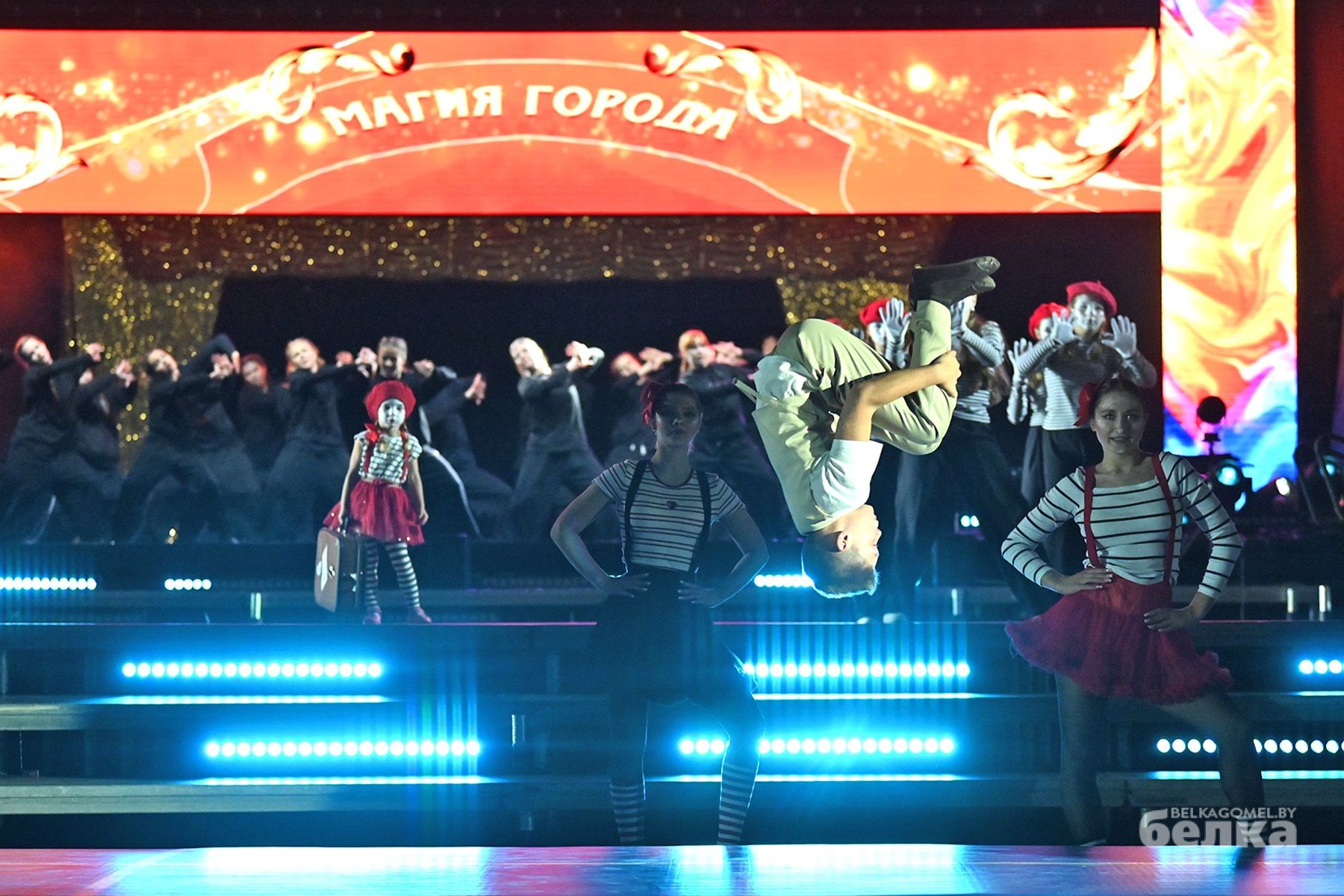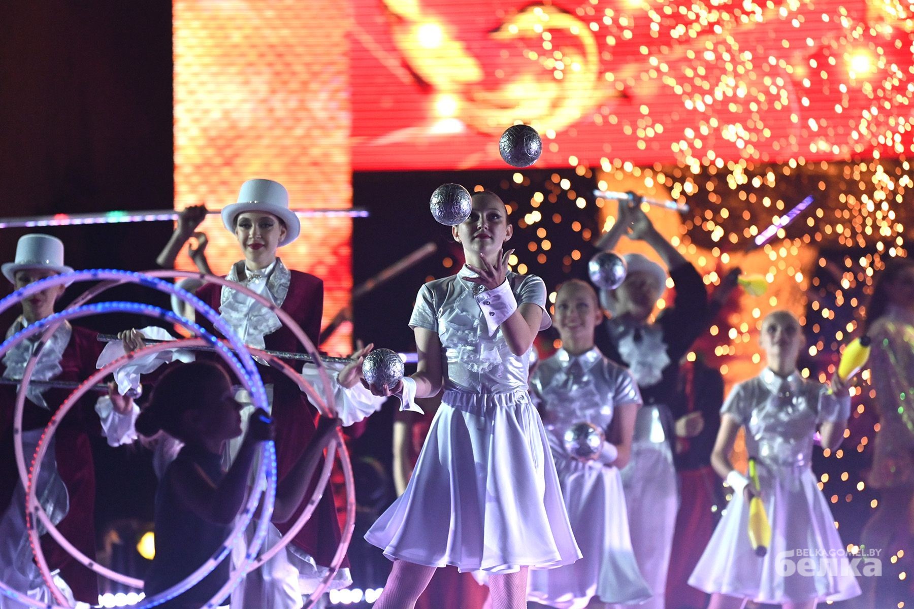 Уличное представление объединило цирковое и другие направления искусства, а также впечатляющие световые эффекты. Зрители увидели лучшие номера танцевальной школы Dance City из Минска, дуэта вокалистов Артёма Скороля и Леры Бернатович, коллектива ходулистов «Весёлые великаны» из Могилёва, а также цирковых студий «Арена» из Мозыря и Орши, перформанс-группы арт-проекта Flash-light.