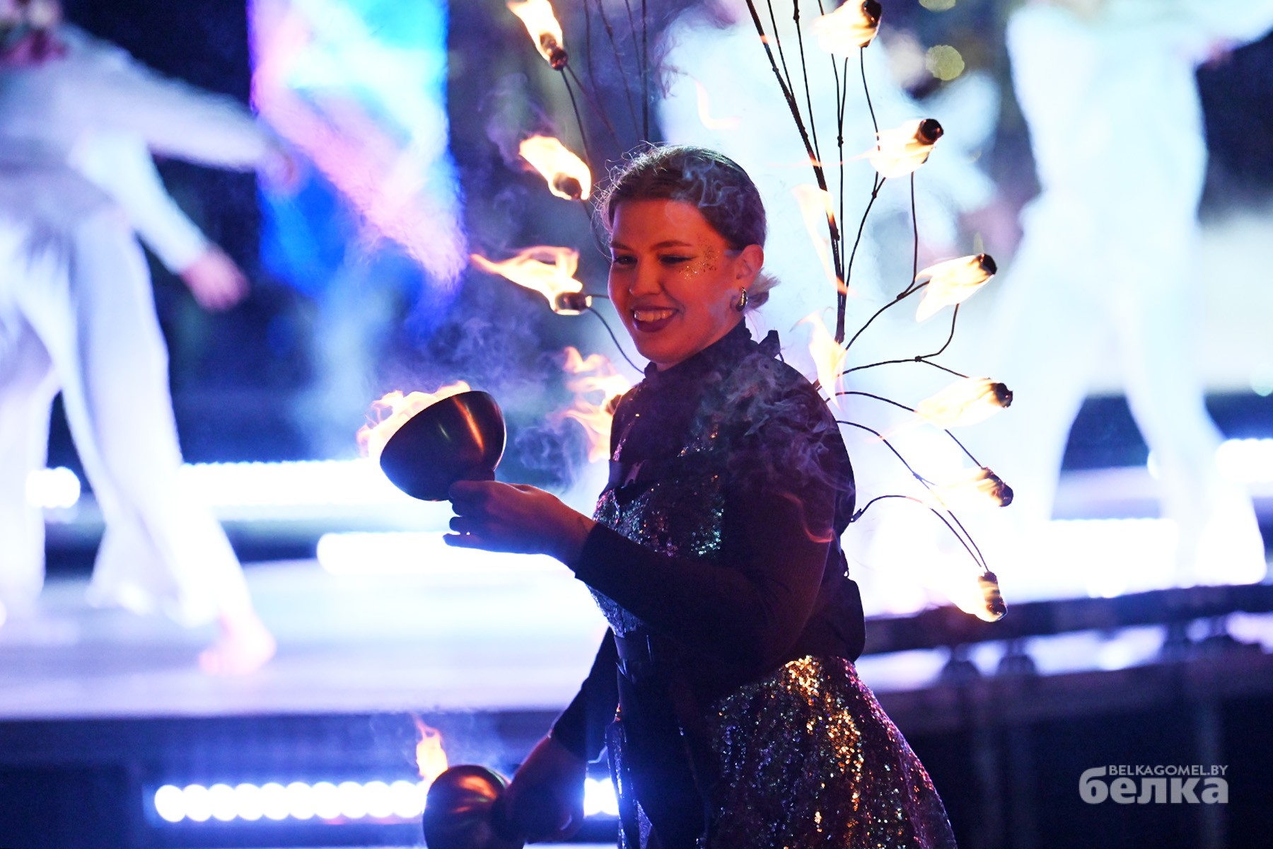 Огонь, музыка и цирковое искусство под открытым небом. Уникальное шоу «Магия города» стало ярким событием фестивальной недели ко Дню города в Гомеле. На импровизированной арене у Ледового дворца выступили сотни артистов разных жанров.