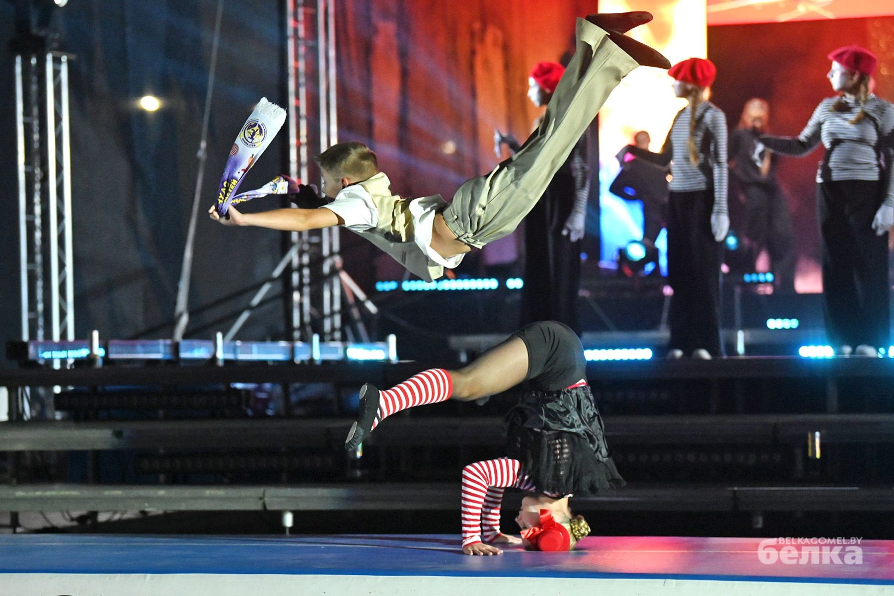 Уличное представление объединило цирковое и другие направления искусства, а также впечатляющие световые эффекты. Зрители увидели лучшие номера танцевальной школы Dance City из Минска, дуэта вокалистов Артёма Скороля и Леры Бернатович, коллектива ходулистов «Весёлые великаны» из Могилёва, а также цирковых студий «Арена» из Мозыря и Орши, перформанс-группы арт-проекта Flash-light.