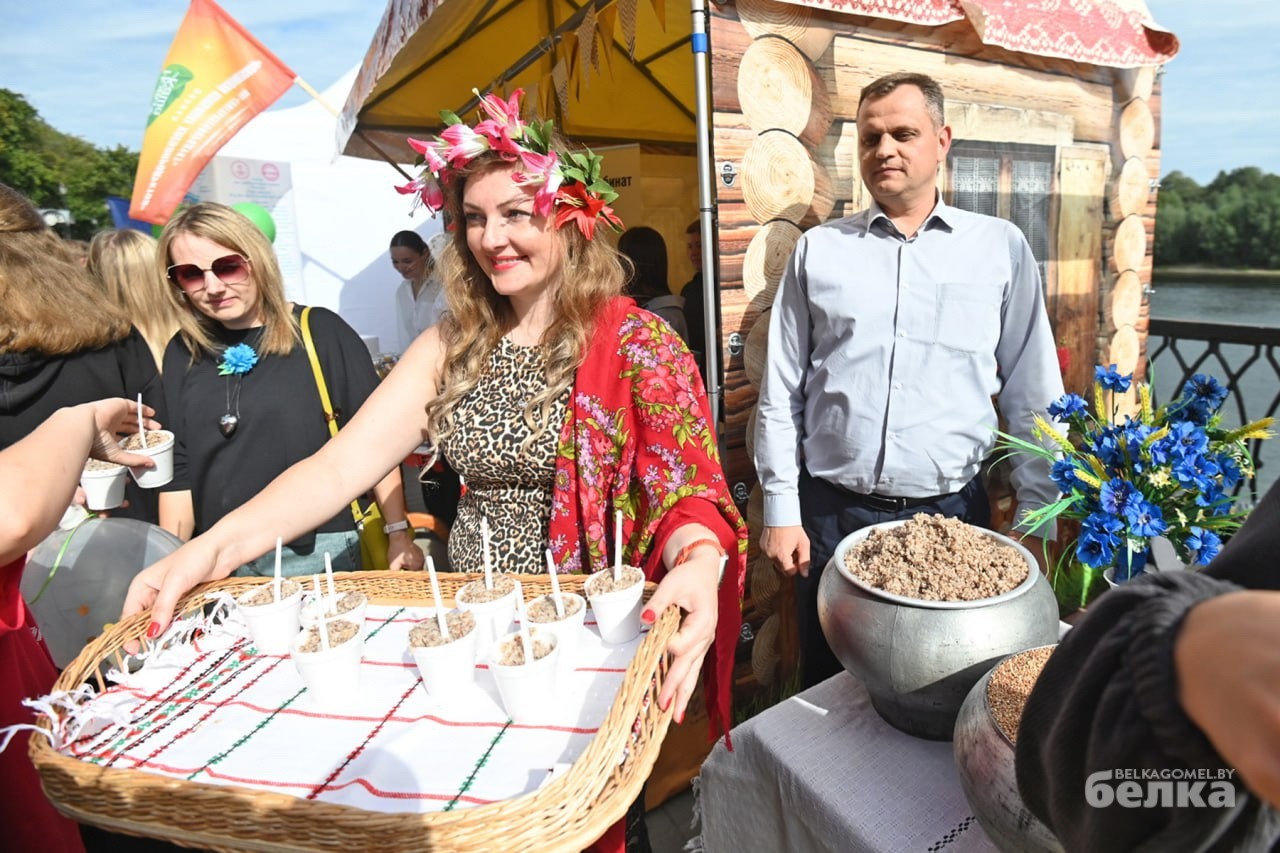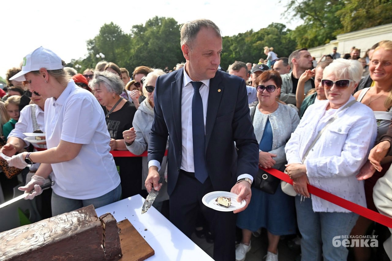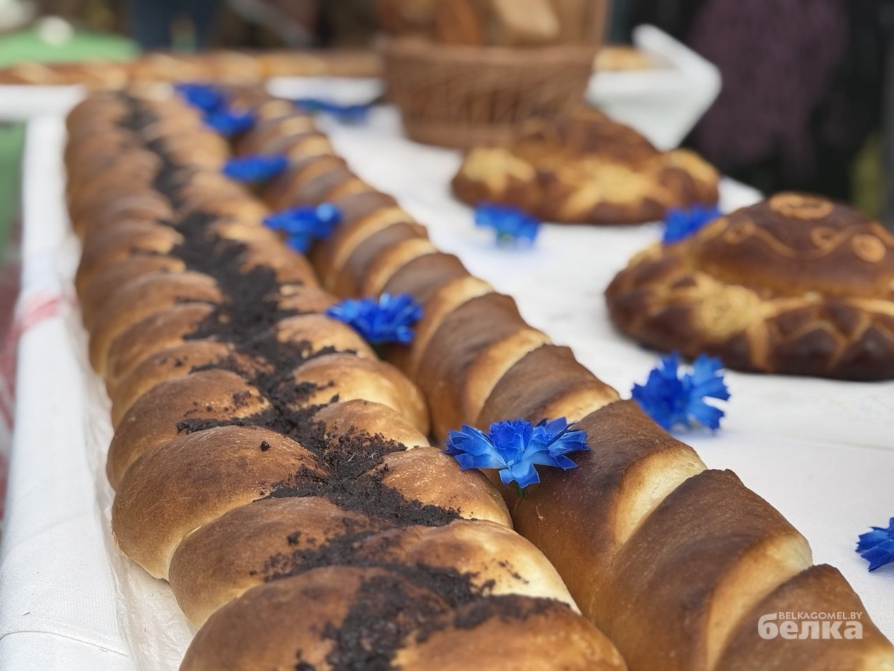 Двухметровый батон и маковая плетенка таких же размеров — фирменная выпечка предприятия «ОРС Гомель». Особенно их оценили посетители постарше. По словам технолога Елены Старовойт, на гигантскую сдобу ушло 4 кг муки, а выпекали ее рано утром накануне праздника.