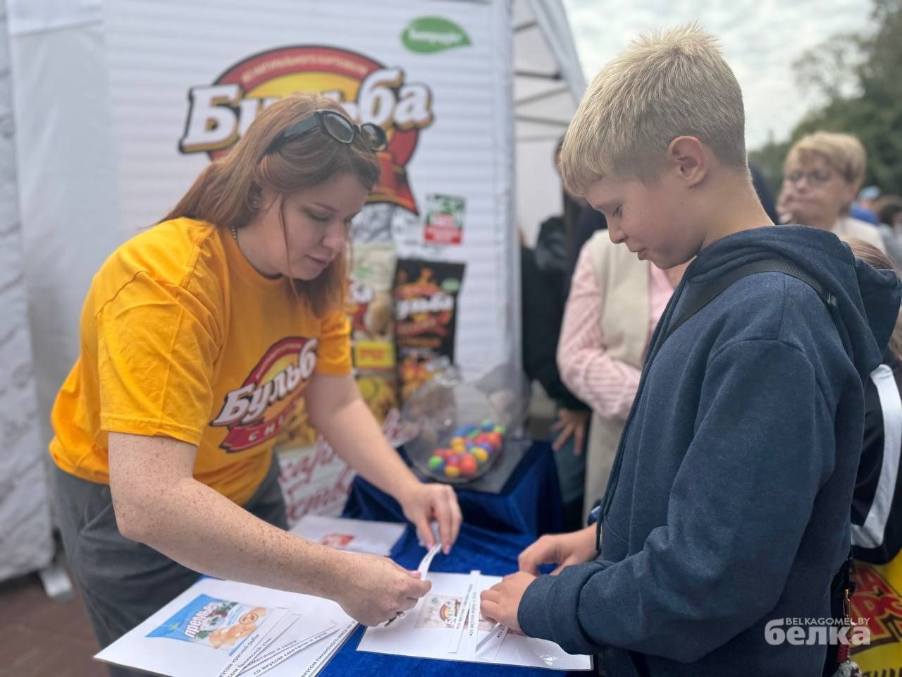 У «Белпродукта» выстроилась очередь за чипсами «Бульба»: килограммовые пачки накануне разыграли среди подписчиков в соцсетях и ждали победителей на вручение, а для гостей устроили беспроигрышную викторину с классическими «Мегачипсами».