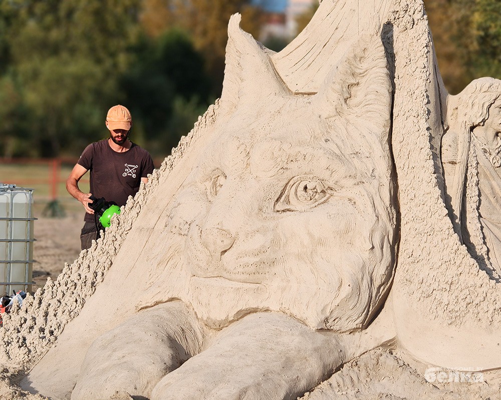 понадобилось 10 мастерам со всех уголков Беларуси, чтобы на Волотовских озёрах выросли трёхметровые песочные скульптуры со сказочными сюжетами. Есть в числе персонажей Кот Баюн и Жар-птица, Дзед-Барадзед. В песке воплощён и образ Лодочника – первого гомельчанина, который приплыл в эти места по Сожу. Рядом с ним главный символ областного центра – рысь. Именно этой скульптуре жюри присудило Гран-при фестиваля песочных скульптур. Автор работы под названием «С любовью, Гомель!» – мастер из Заславля Вадим Бондарец.