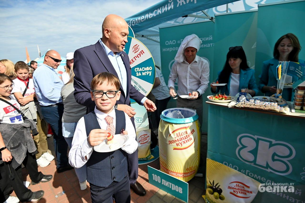 привёз на фестиваль «Гигантомания» жирокомбинат Гомеля. Среди экспонатов были 15-килограммовое мороженое от фабрики «Ингман», двухметровая палка сервелата от Гомельского мясокомбината, 30-килограммовый сырок от «Милкавиты», 55-килограммовая конфета «Аэрофлотская» от «Спартака». Многих интересовало, сохранился ли знакомый с детства вкус в гигантском варианте. Гомельчанка Ирина Лаптева, попробовав, сказала: «Один в один – классика без изменений: шоколад, вафли, какао. Невероятно вкусно!»