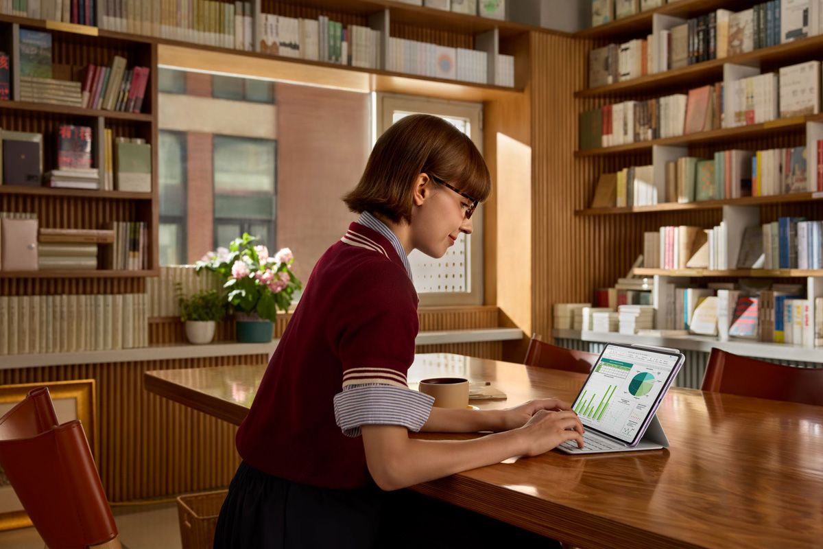 Поддержка высокой частоты обновления до 120 Гц обеспечивает плавное отображение контента. Подстраиваясь под разные сценарии использования, планшет умеет автоматически сбрасывать частоту обновления до 60 Гц для экономии заряда батареи. Соотношение сторон экрана 3:2 хорошо подходит для чтения веб-страниц и работы с документами.