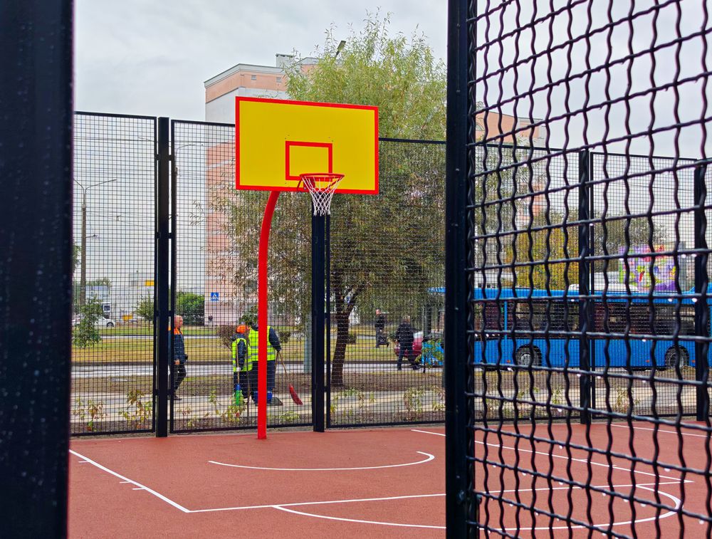 На месте старого песчаного кармана обустроили многофункциональную спортивную площадку.