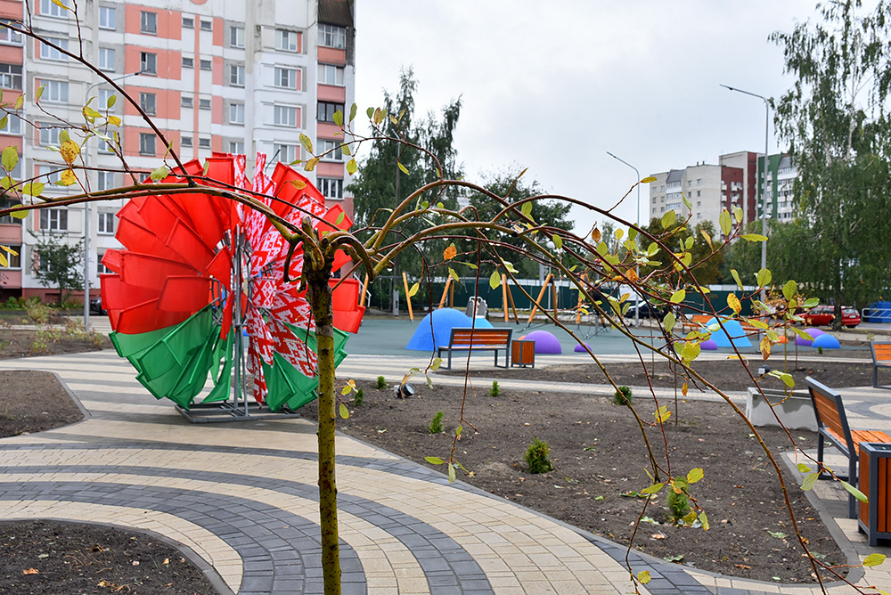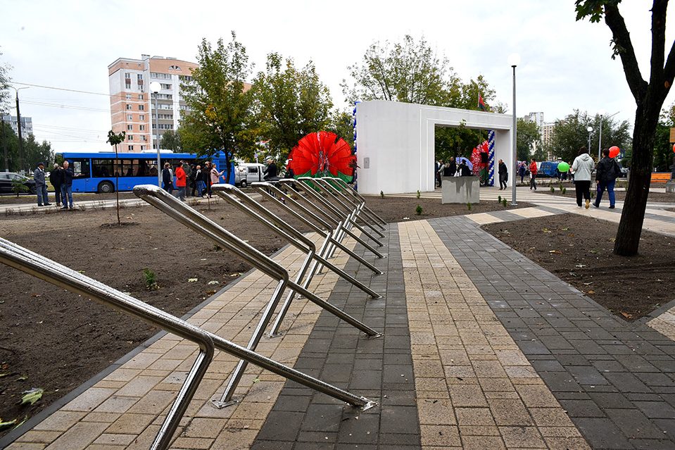 Тематический сквер разбили вдоль жилой застройки на Речицком проспекте, у дома 120. Здесь высадили десятки деревьев и кустарников, оборудовали уютные пешеходные дорожки, проложили качественное освещение с эффектной вечерней подсветкой. Вход в сквер украсила монолитная арка с объёмными световыми буквами.