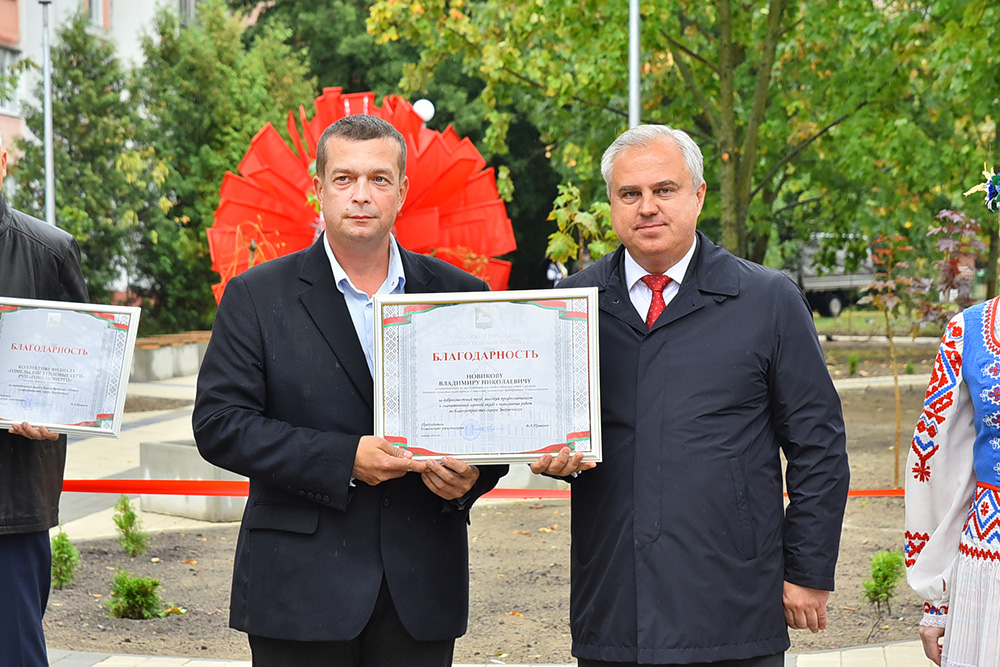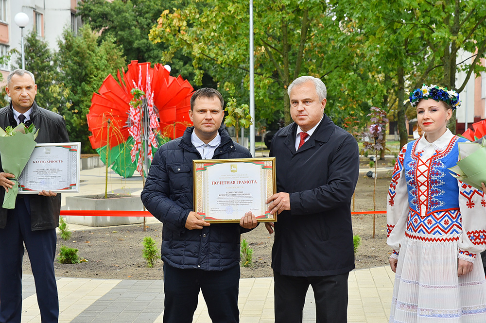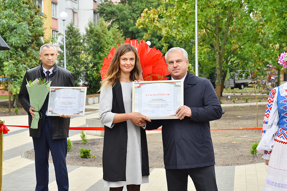 Во время открытия сквера Владимир Привалов вручил благодарности Гомельского горисполкома директору тепловых сетей Валерию Коваленко и работникам других предприятий, внёсших вклад в создание новой зоны отдыха.