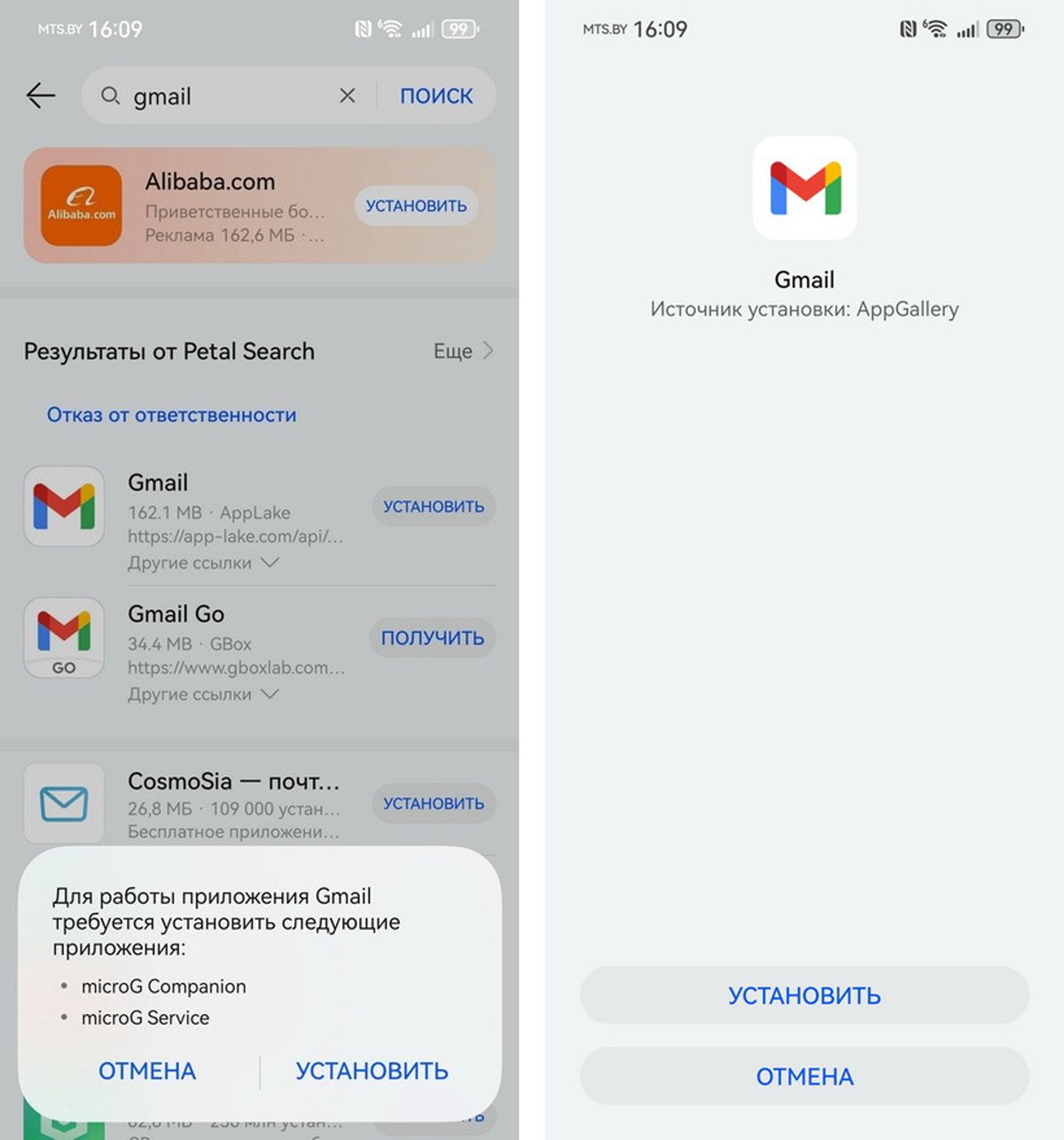 Процесс установки microG (микроДжи) займет несколько секунд. Достаточно через поисковую строку Huawei AppGallery найти любое популярное приложение, которое традиционно требует GMS (Мобильные сервисы Google), например, YouTube или Gmail. Когда вы нажмете кнопку «Установить», система автоматически предложит вам установить два ключевых модуля: microG Services (микроДжи Сервисы) и microG Companion (микроДжи Компаньон).