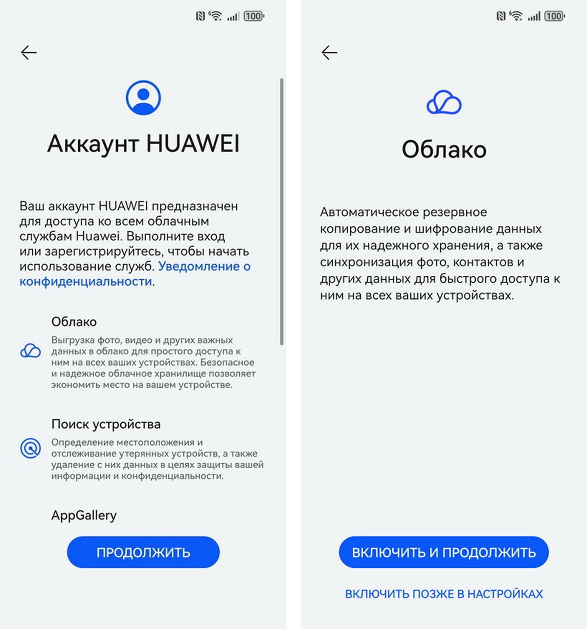 Подключение к интернету нужно не просто, ибо затем потребуется войти в аккаунт Huawei. Он необходим для доступа к фирменному магазину Huawei AppGallery, облаку и другим сервисам. Если аккаунта нет – создайте его, указав имя, номер телефона. Придумайте надежный пароль – здесь все по стандарту.