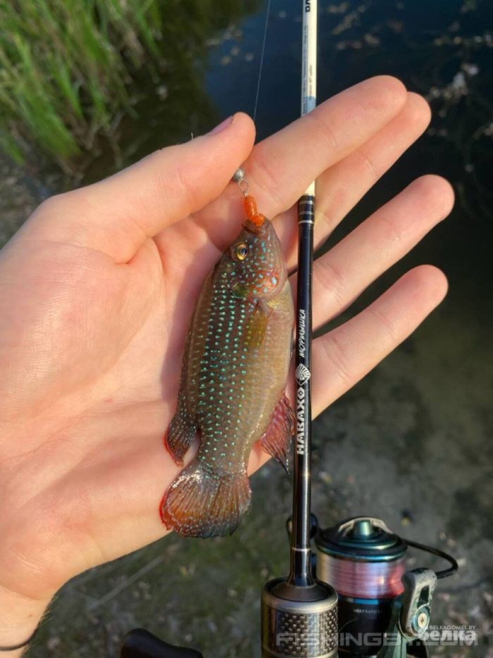 «Я сразу понял, что рыба не из наших краев. Штудируя интернет, выяснил, что это хемихромис-красавец (Hemichromis bimaculatus). Вид в приоритете обитает в водоемах Западной Африки. Скорее всего, рыбка была выпущена в пруд одним из местных аквариумистов», — рассказал Алексей порталу fishingby.com.