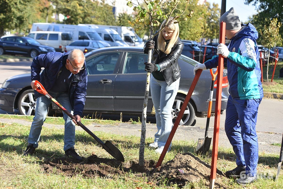 Так, территория у дома №52 на Речицком проспекте пополнилась новой аллеей из 50 лип. Высадили их сотрудники администрации Советского района. Жители ближайших домов и школьники также охотно подключились к озеленению.