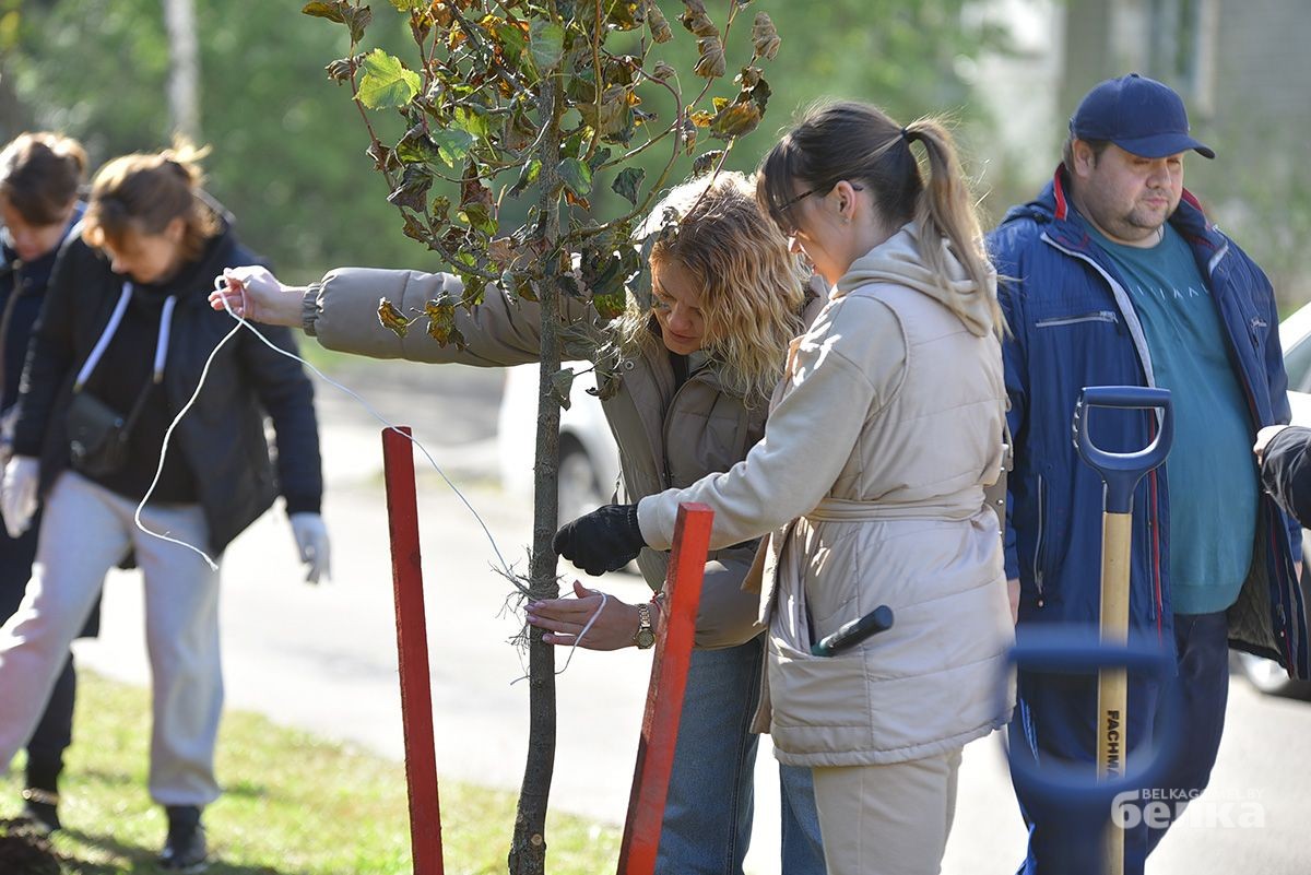 Для многих участников субботника посадка деревьев – не первый опыт, но все равно за процессом следили специалисты «Красной гвоздики». Это же предприятие предоставило саженцы.