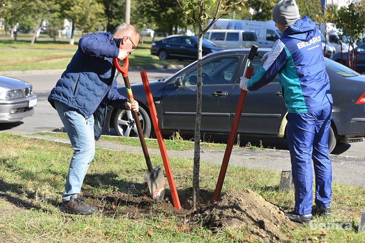 Так, территория у дома №52 на Речицком проспекте пополнилась новой аллеей из 50 лип. Высадили их сотрудники администрации Советского района. Жители ближайших домов и школьники также охотно подключились к озеленению.