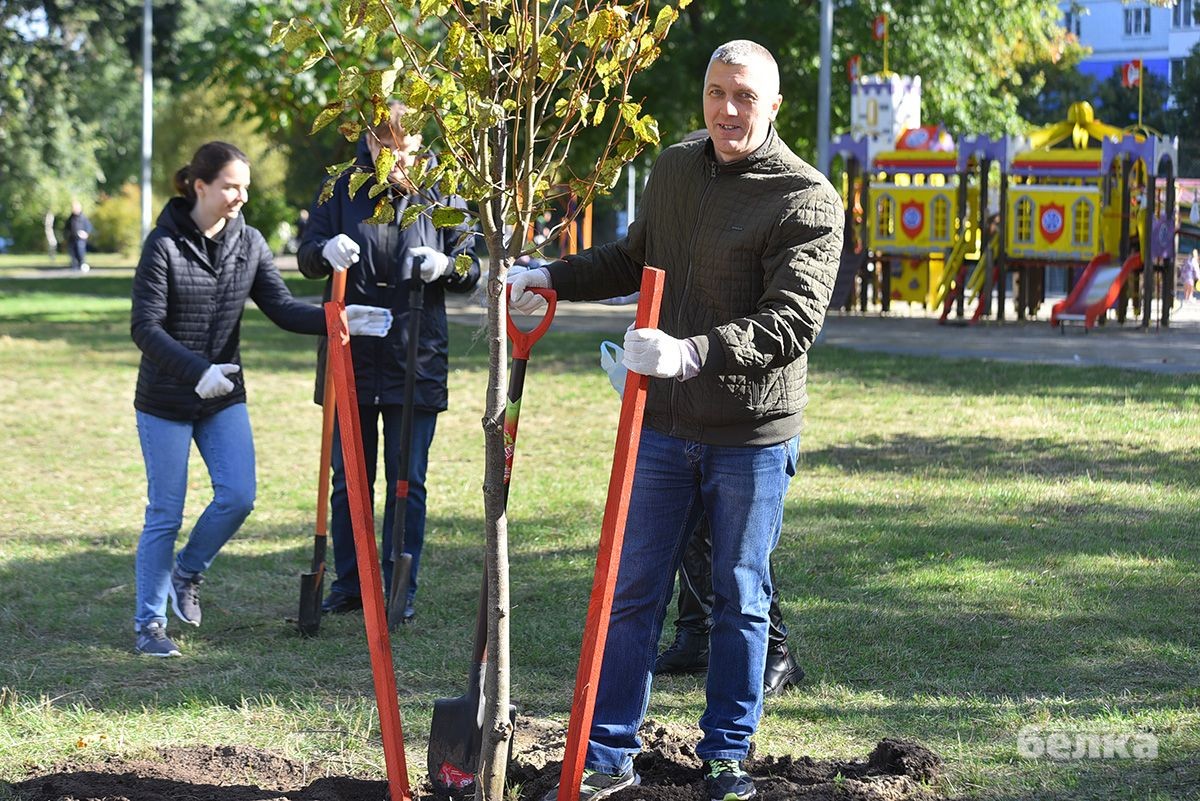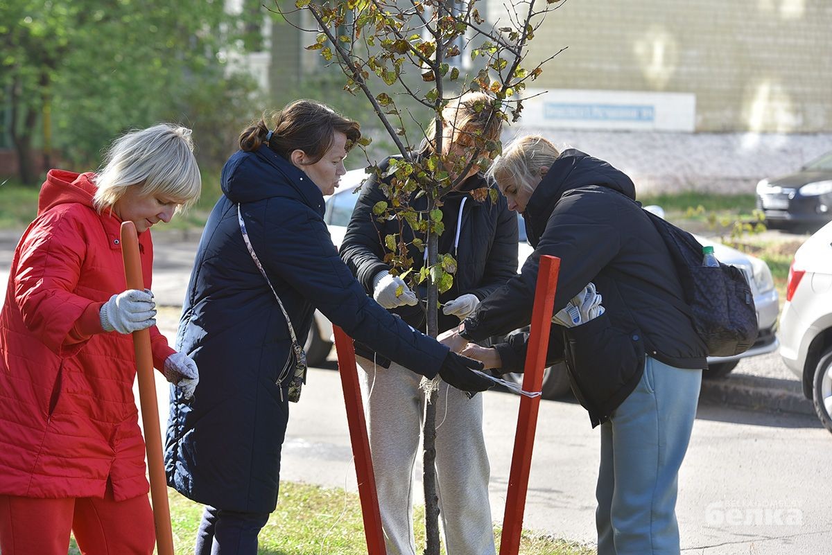 Для многих участников субботника посадка деревьев – не первый опыт, но все равно за процессом следили специалисты «Красной гвоздики». Это же предприятие предоставило саженцы.