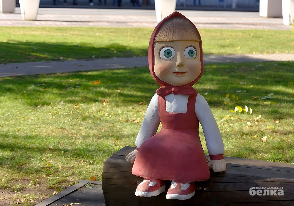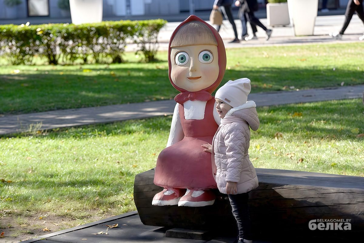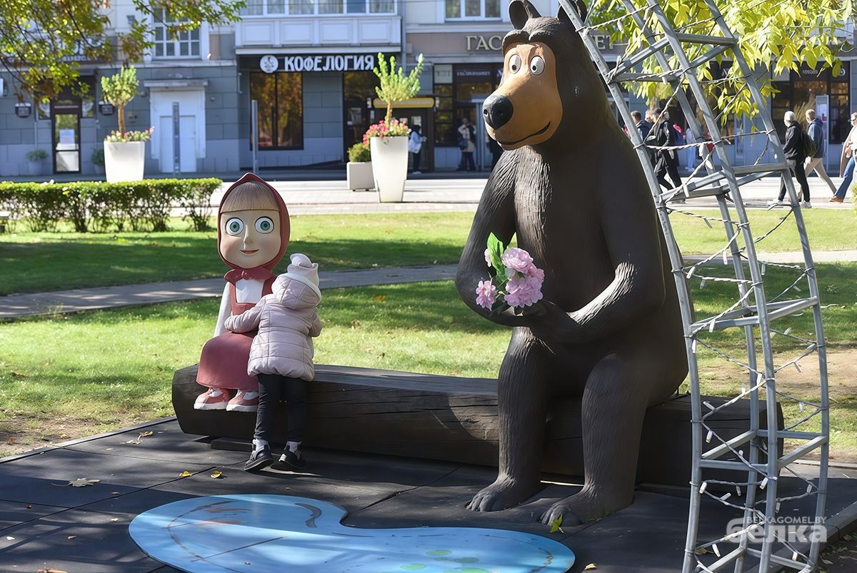 Медведь снова с Машей. Скульптура героини популярного мультсериала после очередного исчезновения вернулась в гомельский сквер. Как сообщили «Белке» в администрации Центрального района, это была уже третья реставрация малой архитектурной формы.