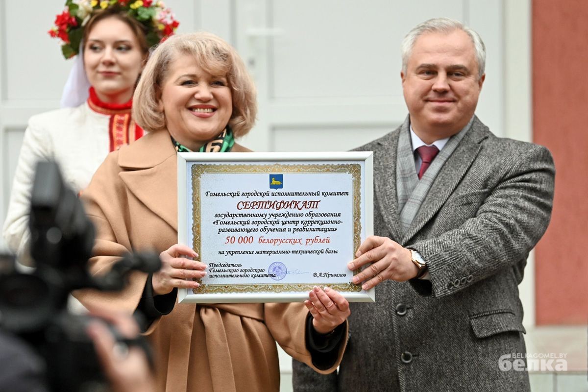 Во время церемонии глава города вручил руководителю центра сертификат на 50 тысяч белорусских рублей.
