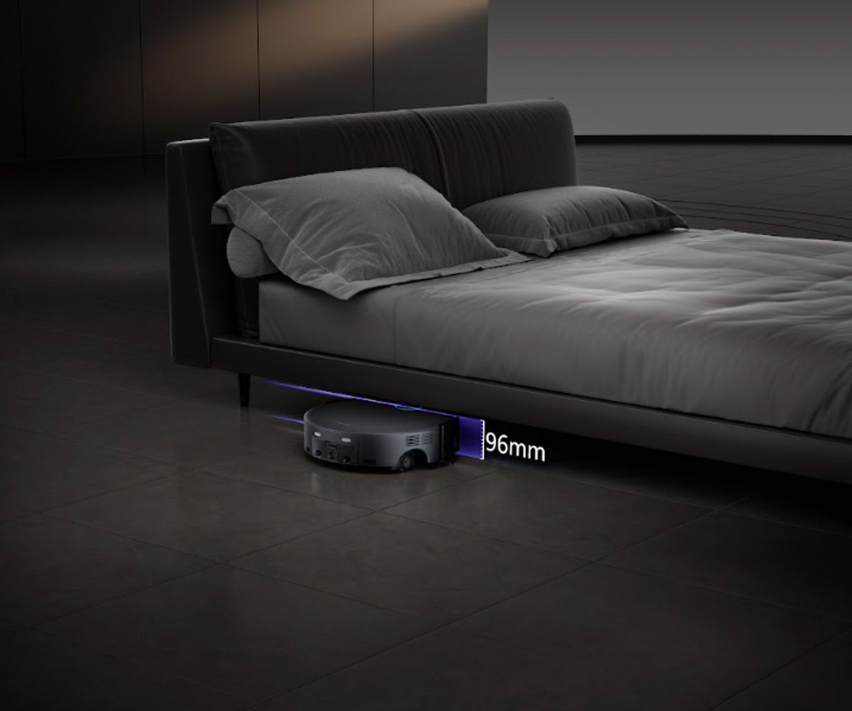 Система MaxiReach выдвигает щетку за пределы корпуса, убирая пыль вдоль стен и плинтусов, а навигация FlexScope с LDS FlexiRise строит точную карту помещения и позволяет проходить под низкой мебелью — высота корпуса всего 96 мм. Система DuoSolution позволяет использовать разные моющие средства на разных поверхностях.