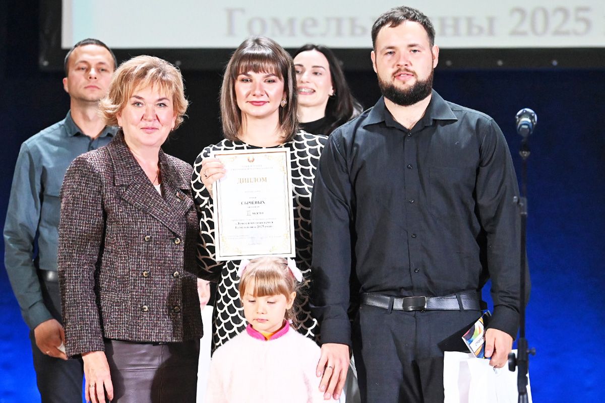 Районный этап конкурса «Лучшая молодая семья Гомельщины — 2025» прошёл 16 октября в Доме учителя. О себе жюри рассказали также семьи Мутовиных и Сычёвых. Любимая традиция Евгения и Анастасии Мутовиных — мастерить с сыном Мишей ёлочные игрушки. А Павел и Ольга Сычёвы — семья строителей — при каждом удобном случае отправляются с дочкой Стефанией в путешествие по белорусским городам.