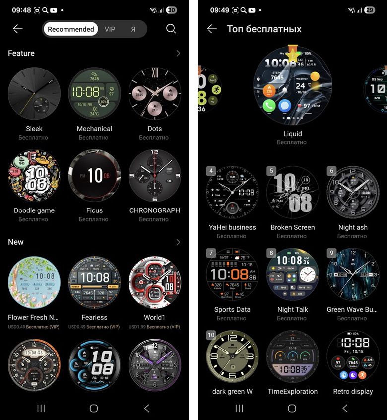 Если понравившийся циферблат платный, перед покупкой ему можно устроить примерку — для оценки доступен пробный режим на 5 минут. Оплата производится банковской картой, привязанной к аккаунту Huawei, которую система предложит добавить при необходимости. С недавнего времени пользователям Huawei стала доступна VIP-подписка, которая позволяет использовать любые платные циферблаты без дополнительной платы в течение определенного времени.