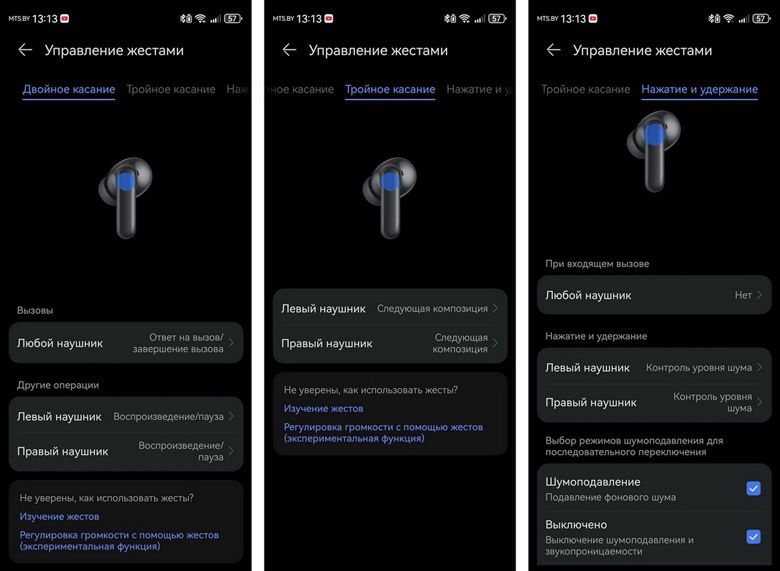 Каждый жест можно индивидуально настроить в AI Life. Вместо шумоподавления на удержание, например, назначить увеличение или уменьшения уровня громкости. Предусмотрен отдельный раздел «Экспериментальные функции», позволяющий регулировать громкость 5-кратным быстрым нажатием. Все жесты срабатывают быстро и четко, в том числе и экспериментальный. Никаких проблем у нас ними не возникло.