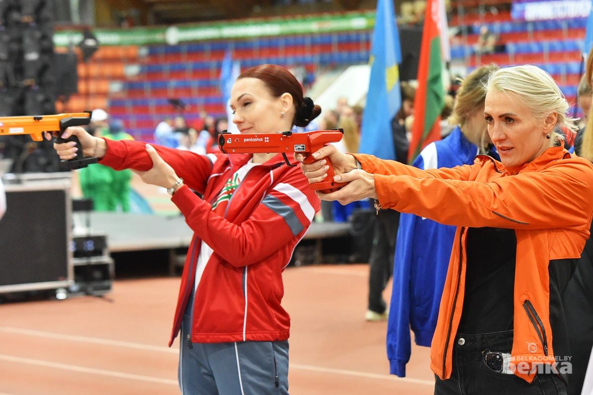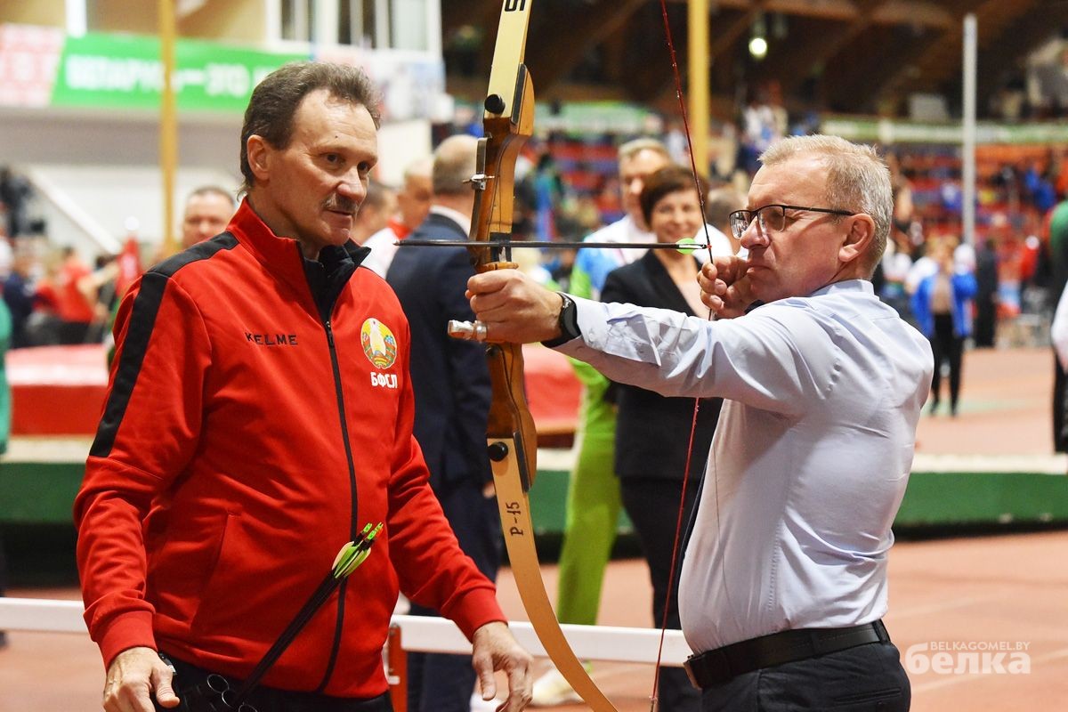В легкоатлетическом манеже проходили соревнования по стрельбе. В мишени с разных дистанций в основном целились первые лица предприятий и организаций. Стреляли из электронного пистолета и спортивного лука, а также завоёвывали очки в дартсе.