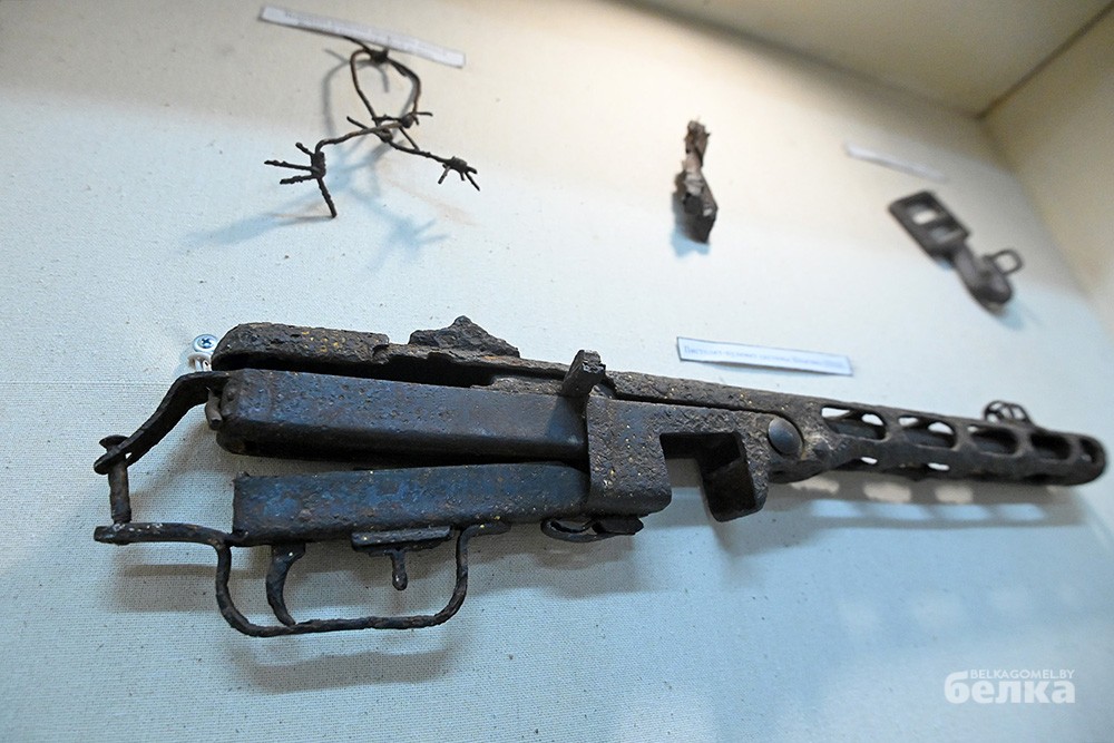 Особенность музея в том, что его экспонаты не спрятаны под стеклом, а находятся в свободном доступе. Каждый может попробовать передёрнуть часть автомата ППШ. Она без приклада, но с действующим затвором.