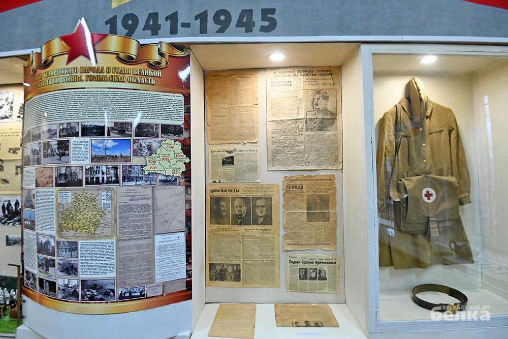 Послушать старые пластинки, примерить солдатскую шинель и форму военной санитарки, а ещё – выпить «кипятку» из солдатской кружки и почитать газету 1945 года. Всё это предлагают посетителям музейной комнаты в Гомельском колледже торговли и услуг. Эспозиция, посвящённая подвигу советского народа в годы Великой Отечественной войны, открылась накануне Дня освобождения Гомеля от немецко-фашистских захватчиков. Первую экскурсию для «Белки» провёл руководитель военно-патриотического воспитания и созданного при колледже клуба «Рубеж» Александр Михальченко.