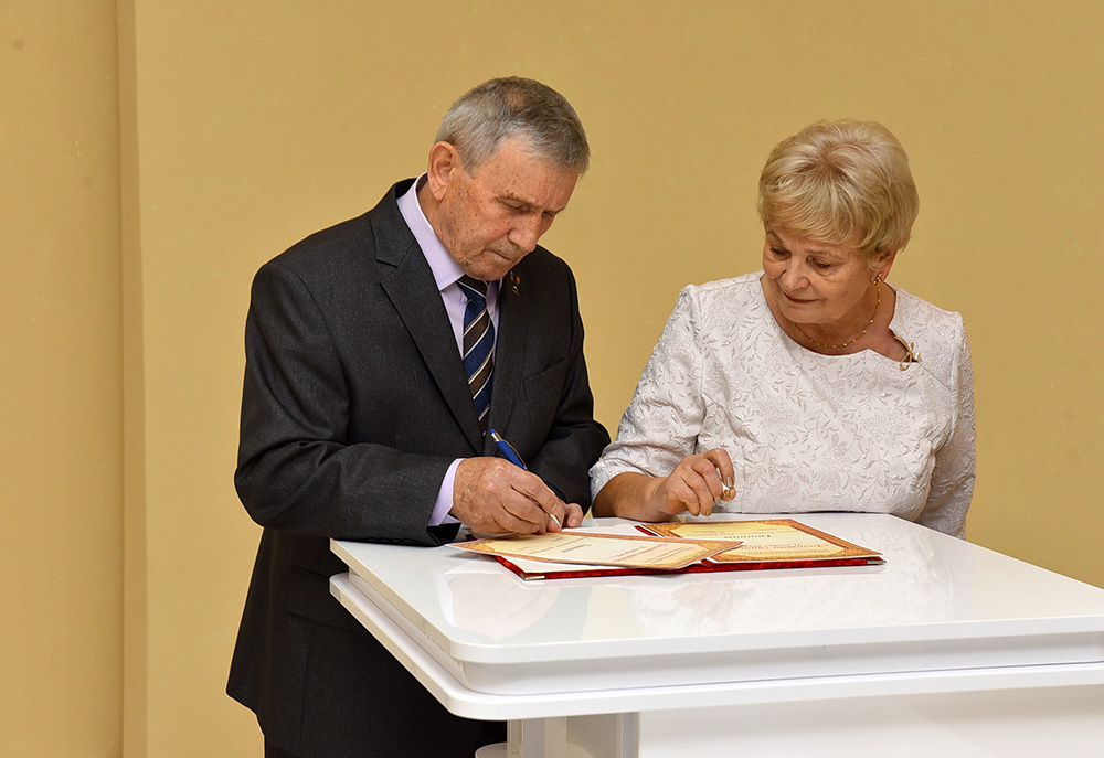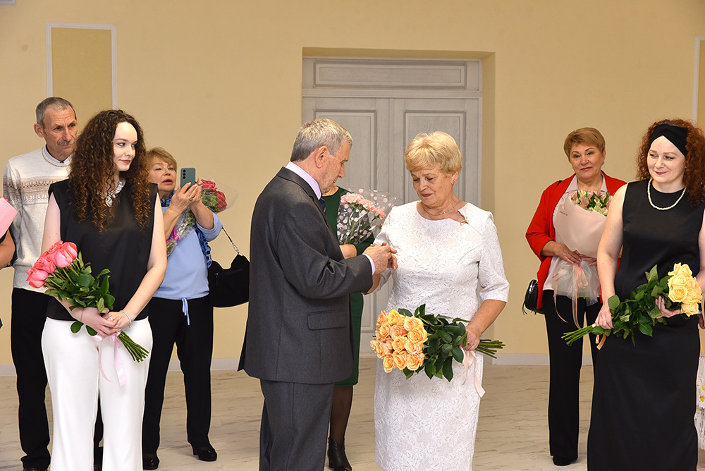 В полувековой юбилей супруги снова символически скрепили свои узы, надев друг другу обручальные кольца в загсе Советского района, и повторили свой первый танец. На церемонию поздравить их пришли самые близкие люди. В том числе дочка и любимая внучка Арина, которой уже 21 год.