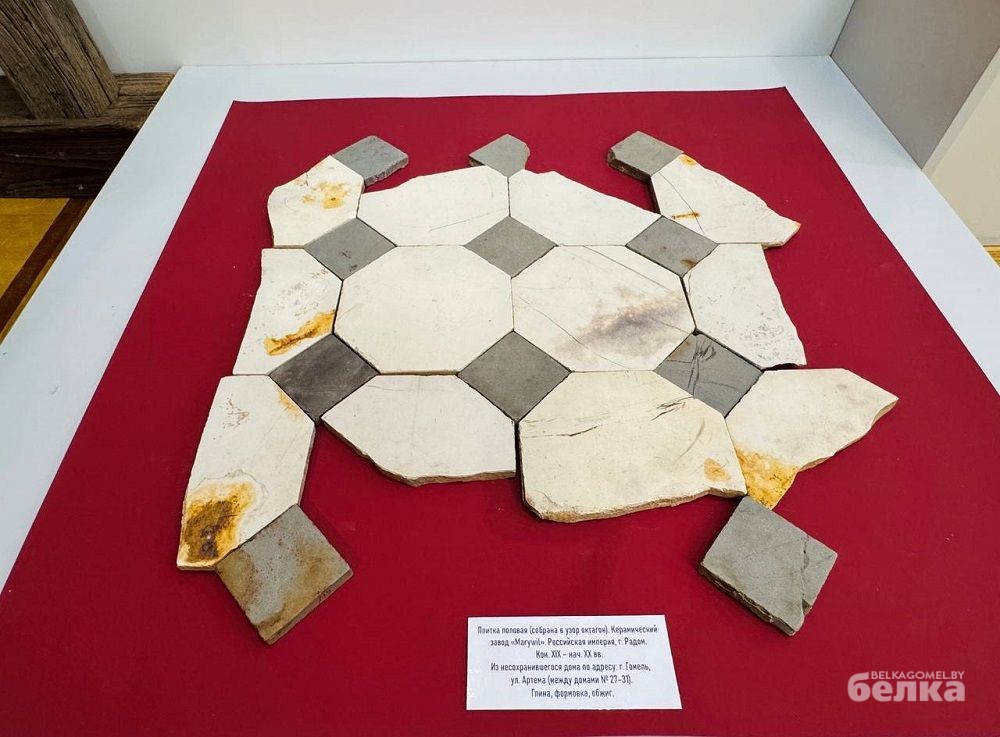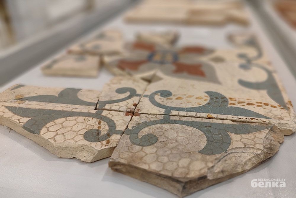 Дом, исчезнувший с карты Гомеля, принадлежал некому зажиточному горожанину. Половую и отделочную плитку там нашли «ин ситу», то есть в изначальном расположении. Белая керамика с черными деталями вероятнее всего лежала на полу в кухне или подсобном помещении. А бежевую отделочную плитку с узорами использовали как декор.