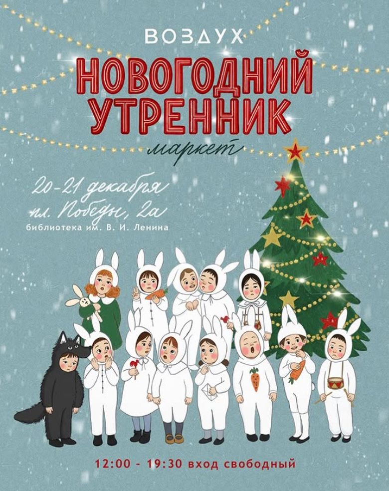 Большой рождественский маркет организует студия «Воздух». Маркет в стилистике новогоднего утренника из детского сада пройдёт на втором этаже библиотеки имени Ленина. Мастера и ремесленники будут нарядными, вы тоже подготовьтесь.