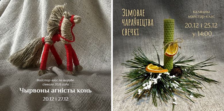 Два тематических мастер-класса пройдут в филиале Ветковского музея. Будут делать символ наступающего года, а чтобы придать огненной лошади белорусского колорита, сделают её из льняных ниток. Второй сувенир — композицию со свечой — смастерят из готовой восковой вощины. На оба мастер-класса требуется предварительная запись, вот телефон: 50-96-98.
